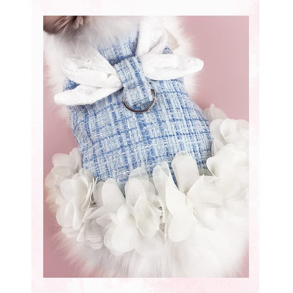 【美しく優雅のデザイン】かわいもおしゃれお洋服のように着せられるお洒落なデザインです。レースの花で飾られたウサギのハーネスは、人々に若々しい活力の感覚を与えます。ペットたちは春の花のように着飾っている。