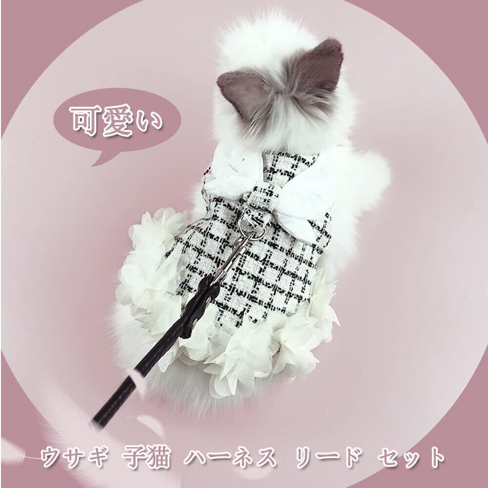 【在庫処分】ウサギ 子猫 ハーネス リード セット姫風モルモット 猫 ハムスター 可愛い ドレスうさぎ 服 小型 ハーネス お出かけ 着ぐるみ 簡単着脱 迷子防止 牽引ロープ 記念撮影 小動物可愛いうさぎ服 美しく優雅 小型ハムスター うさぎハーネス&リードセット 記念撮影 小動物 薄手 仮装 ペット用品 S 黒と白のチェック柄