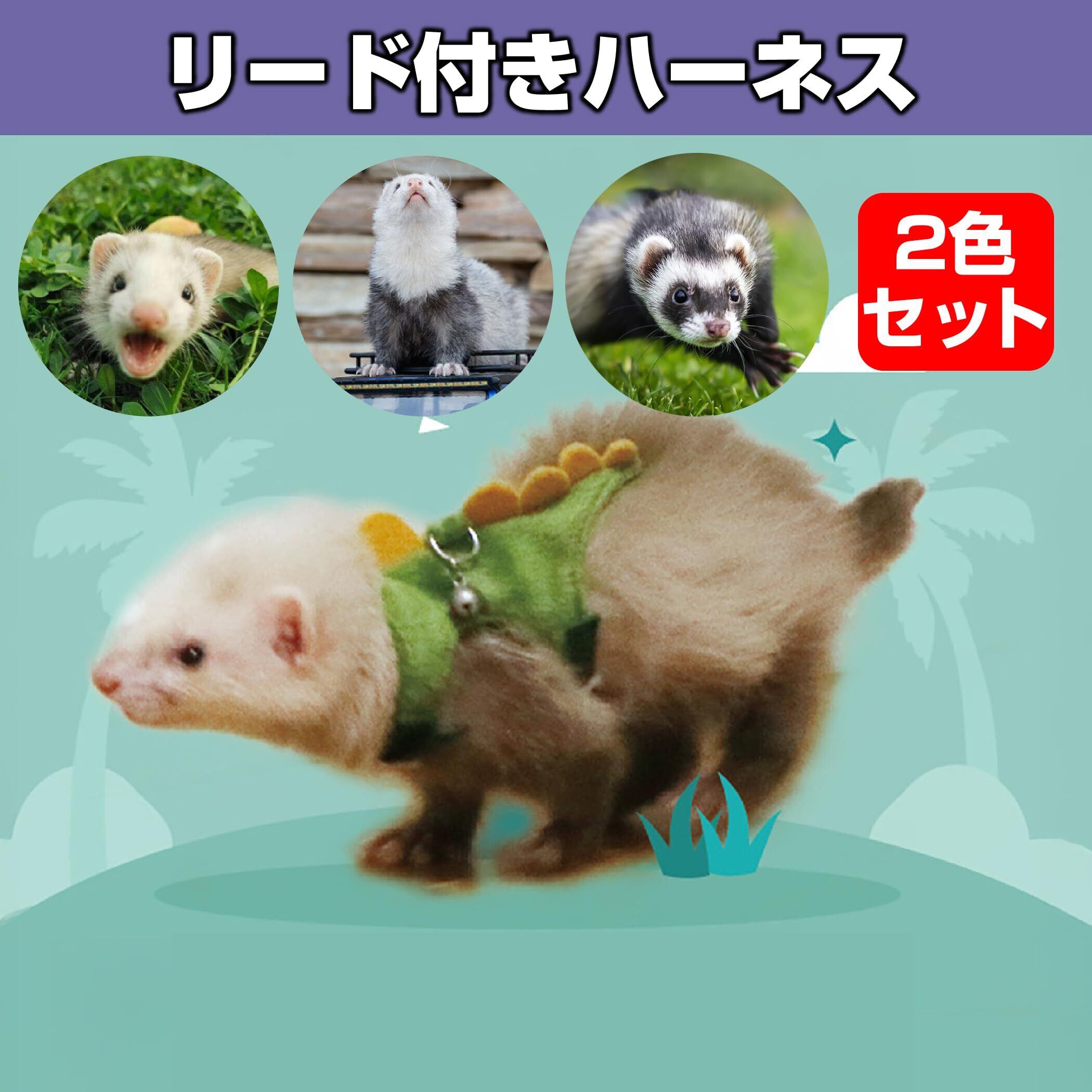 Felimoa フェレット ハーネス リード付き 恐竜 装着簡単 小動物用ハーネス 2色セット