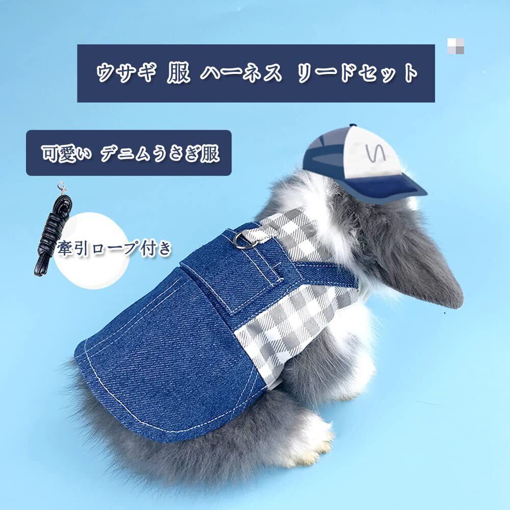 Hitasi 子猫 ハーネス リード セット 可愛い うさぎ服 デニム 格子 モルモット 子犬 小動物用 胸あて式 調整可能 着ぐるみ お散歩用リード お出かけ用品 迷子防止 牽引ロープ 矮小ウサギに最適 簡単着脱 記念撮影 仮装 ペット用品 M(1?2kgのウサギに最適) 赤-帽子付き