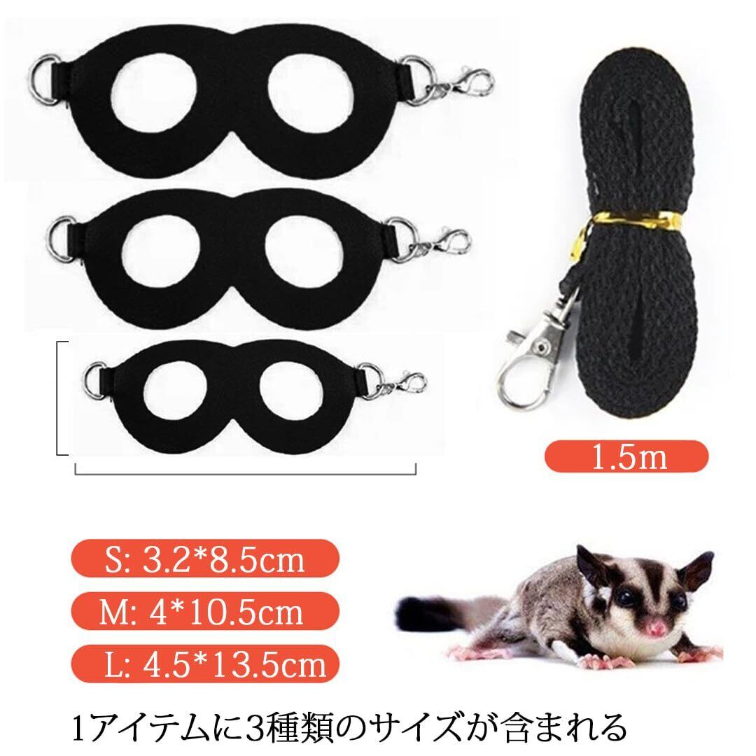 フクロモモンガ 牽引ロープ 小動物 モモンガ ハーネス リードセット ハムスター牽引ロープ 爬虫類 ハムスター お散歩 お出かけ用 簡単着脱 3サイズ 調節可能 モルモット テンジクネズミ お出かけ用 散歩用 (ブラック)