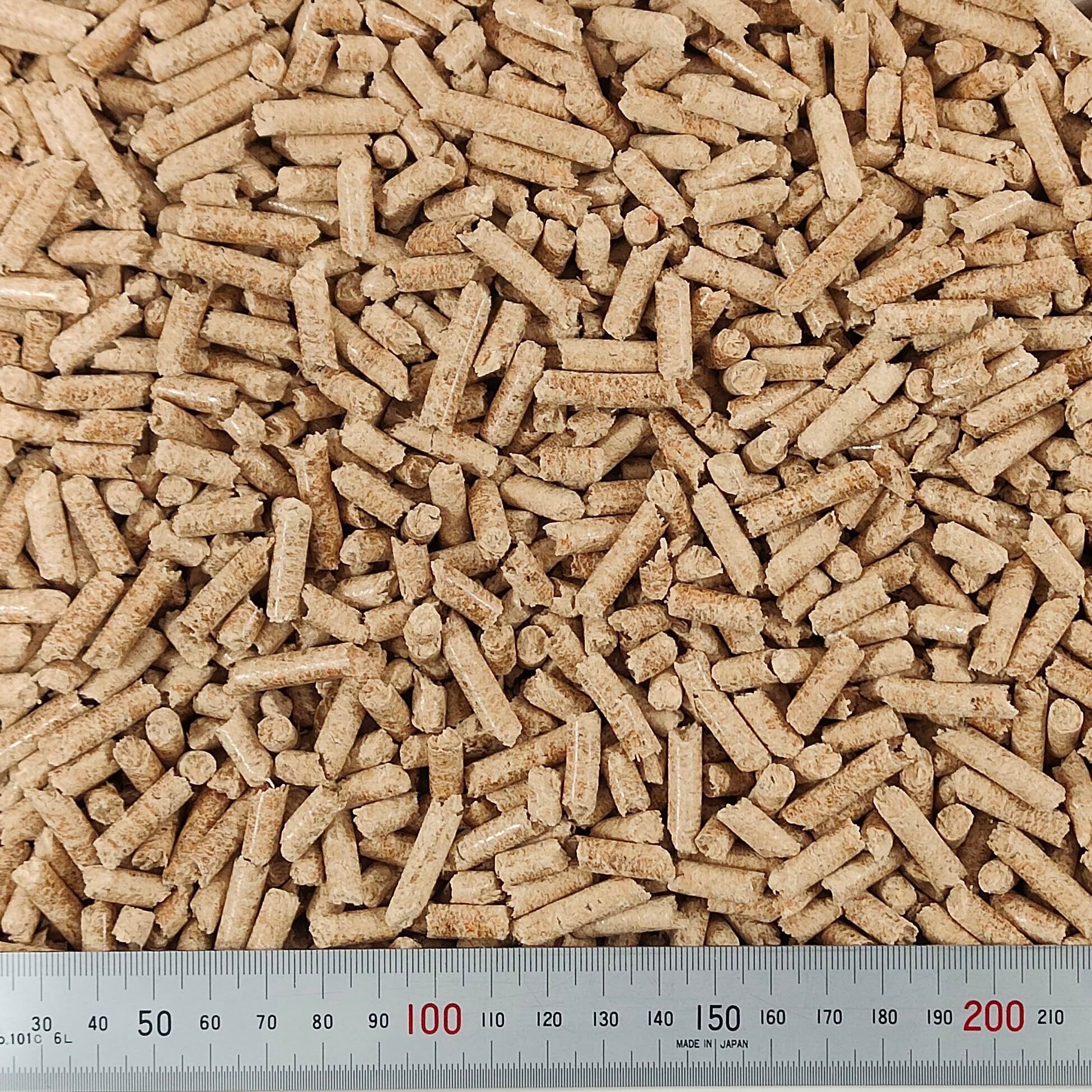 「ヒノキの力で消臭・抗菌!バツグンの吸収力!」 ヒノキなどの針葉樹が持つフィトンチッドの効果でしっかり消臭・抗菌。吸収力の高い圧縮タイプなので、少量のトイレ砂でもオシッコをしっかり吸収します。●フィトンチッドとは?樹木などが自己防衛のため、自ら作り出して発散するという揮発性成分のことです。フィトンチッドは抗菌・防虫・消臭などに効果があると言われています。 「100%ピュアな原料だから、うさぎ・小動物がかじっても安全!」 製材所・木工所・木材加工所から出た、ヒノキとスギの木くず(おがくず・かんなくず)や、間伐材を原料としています。なんでもかじるうさぎ・小動物の習性を考えて、接着剤が含まれている、集成材から出た木くずは使用していません。●集成材とは?天然木から一定の大きさに切断した板を乾燥させ、節や割れなどの欠点となる部分を取り除き、接着剤で結合した木材です。 「トイレお掃除簡単、水洗トイレに流せる」 吸収後はさらさらの木粉になるのでトイレが汚れにくく、100%有機成分で作られているトイレ砂なので、水洗トイレに流せます。