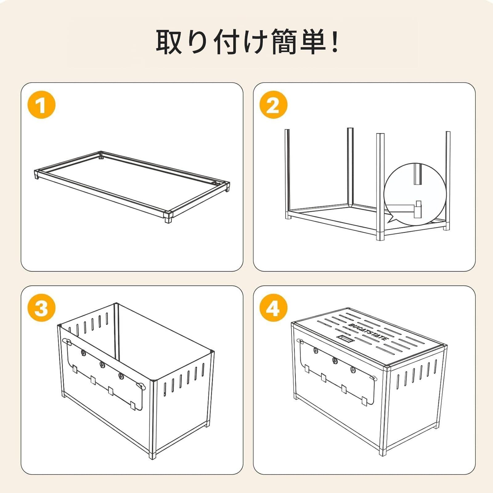 【通気性抜群&お世話やすい 】トップカバーと左右両側に排気口が設計されているので通気性抜群で、風通しが良い、夏は快適に過ごすことができます。天面と前面の2か所に扉がついていますので、日常のメンテナンスやエサやりがしやすいになります。また、床材の取り替えが簡単、お手入れ掃除も楽に行えます。