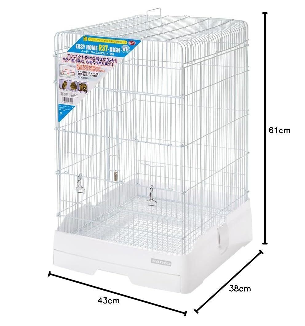 小鳥やシマリスなどの小動物に幅広く使用できる天井の高いケージです。外漏れしない引き出し式トレイで、お掃除もらくらくです。取り外し型大きく開く天井パネルは飼育用品を出し入れしやすく、お手入れもしやすいです。正面左右小扉用、脱走防止のナスカンが2つ付属されています。