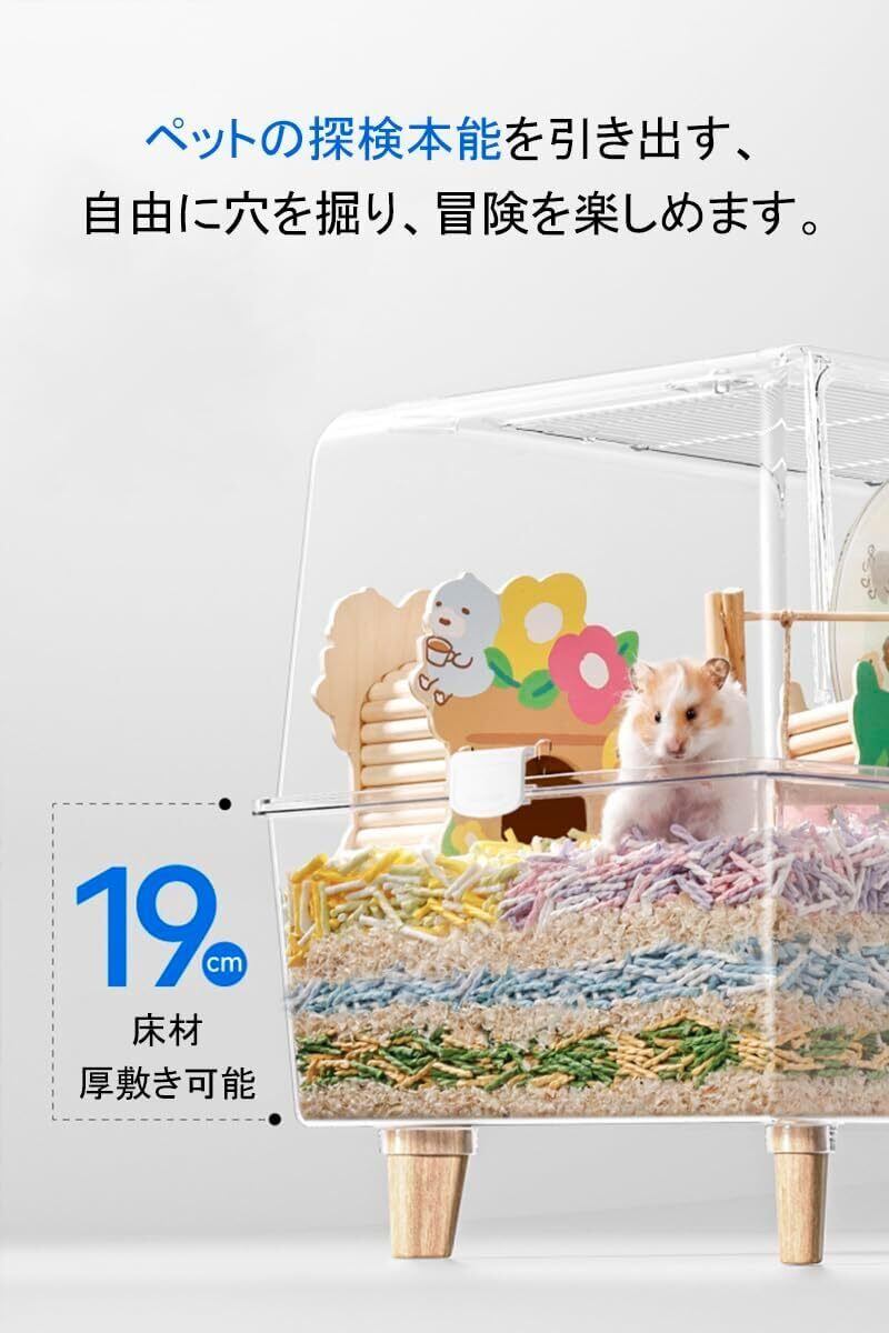 【便利な深めクリアートレイ】ハムスター ケージのクリアトレイは19cmの深さがあり、床材をたくさん入れても飛び散りにくく、ハムスターが掘ったり潜ったりするのに十分なスペースを提供します。底トレイは簡単に取り外せ、掃除も便利です。