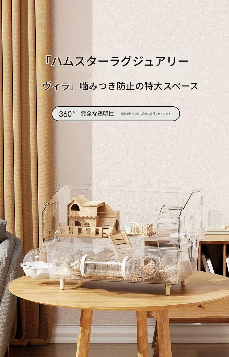 ハムスターケージ【大きい】ゲージ アクリル製 小動物 完全透明 大型 ゴールデンハムスター対応 360°観察 組み立て簡単 分解収納可能 かじり防止 軽量 広々空間 (標準モデル(トンネル付き))
