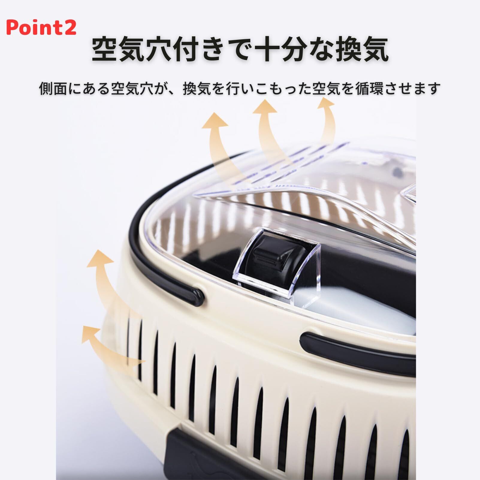 【通気孔付きでムレにくく快適】 側面と上部に通気口を配置し、ケース内の空気がこもりにくい構造。移動中もペットのストレスを軽減し、快適な環境を保ちます。