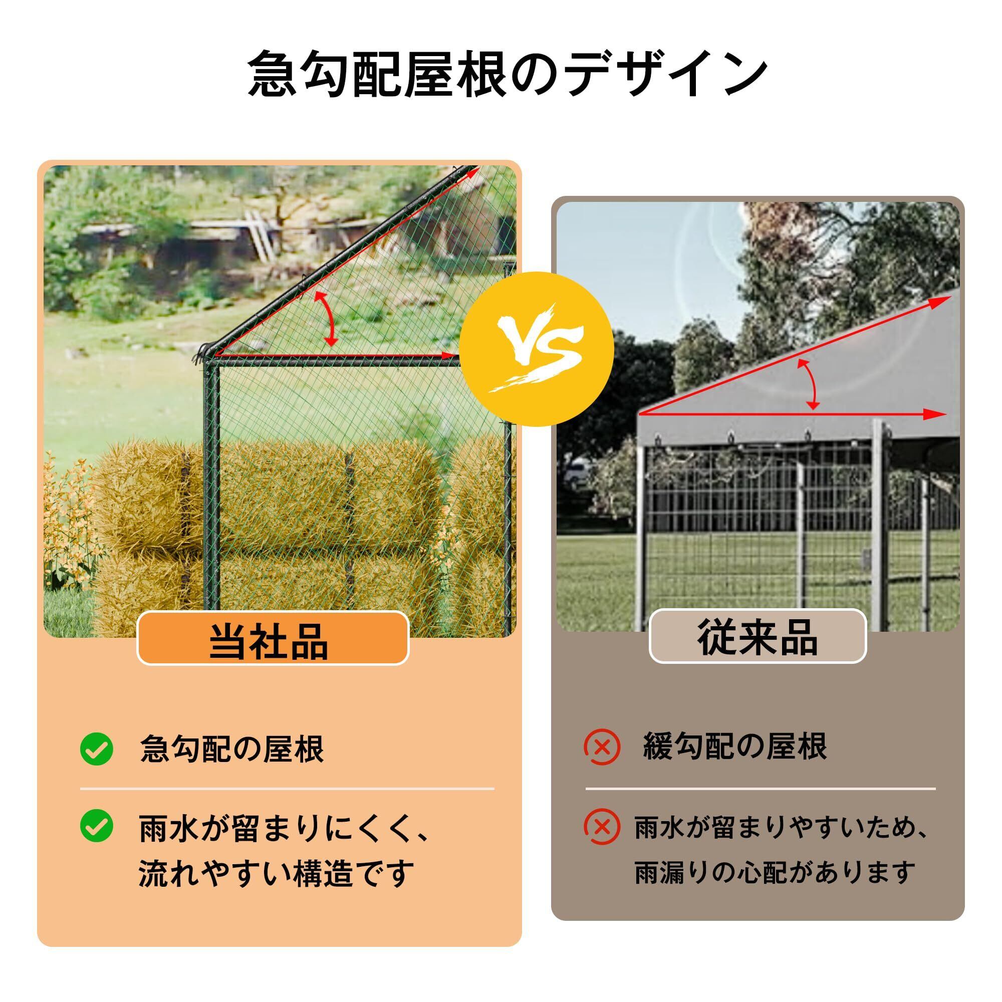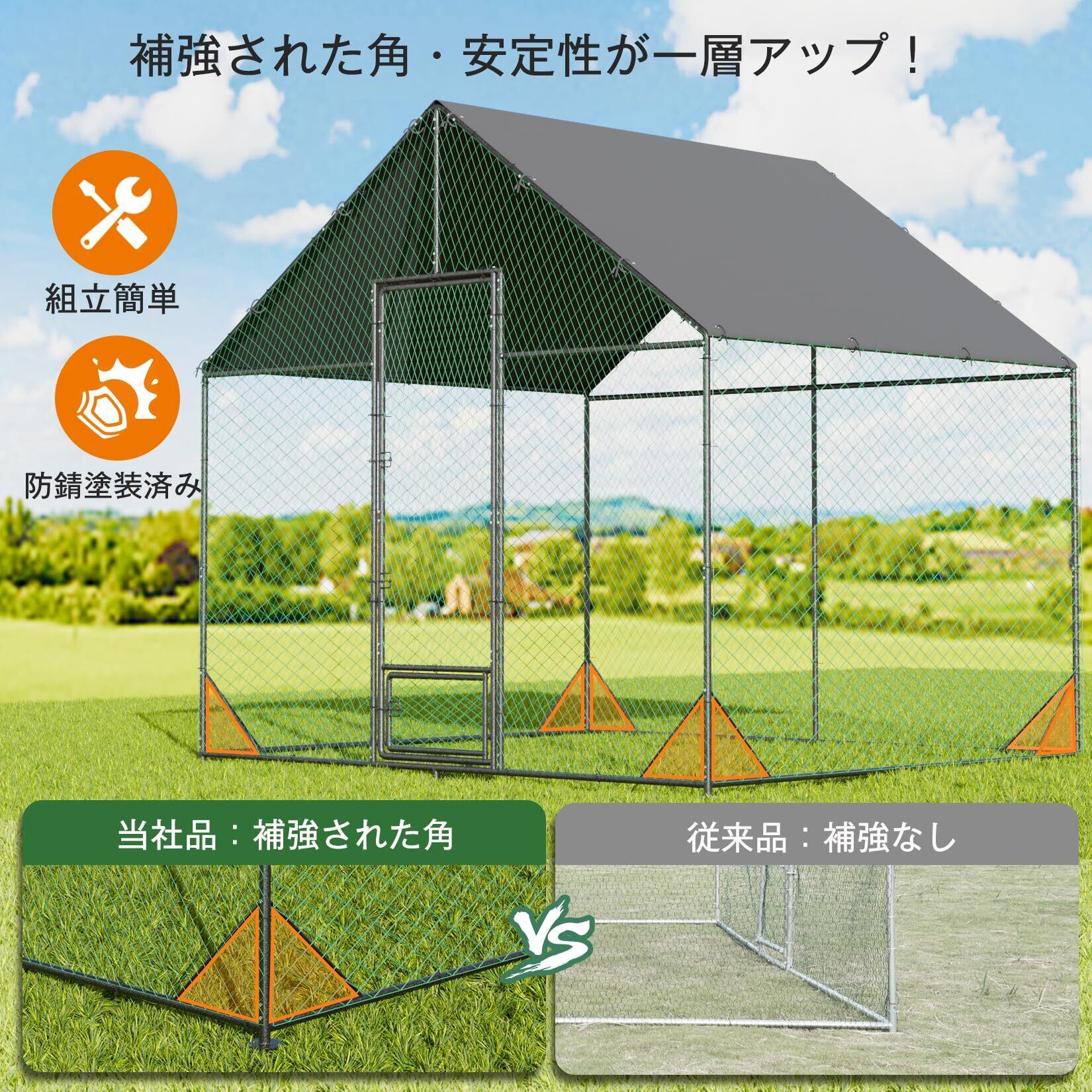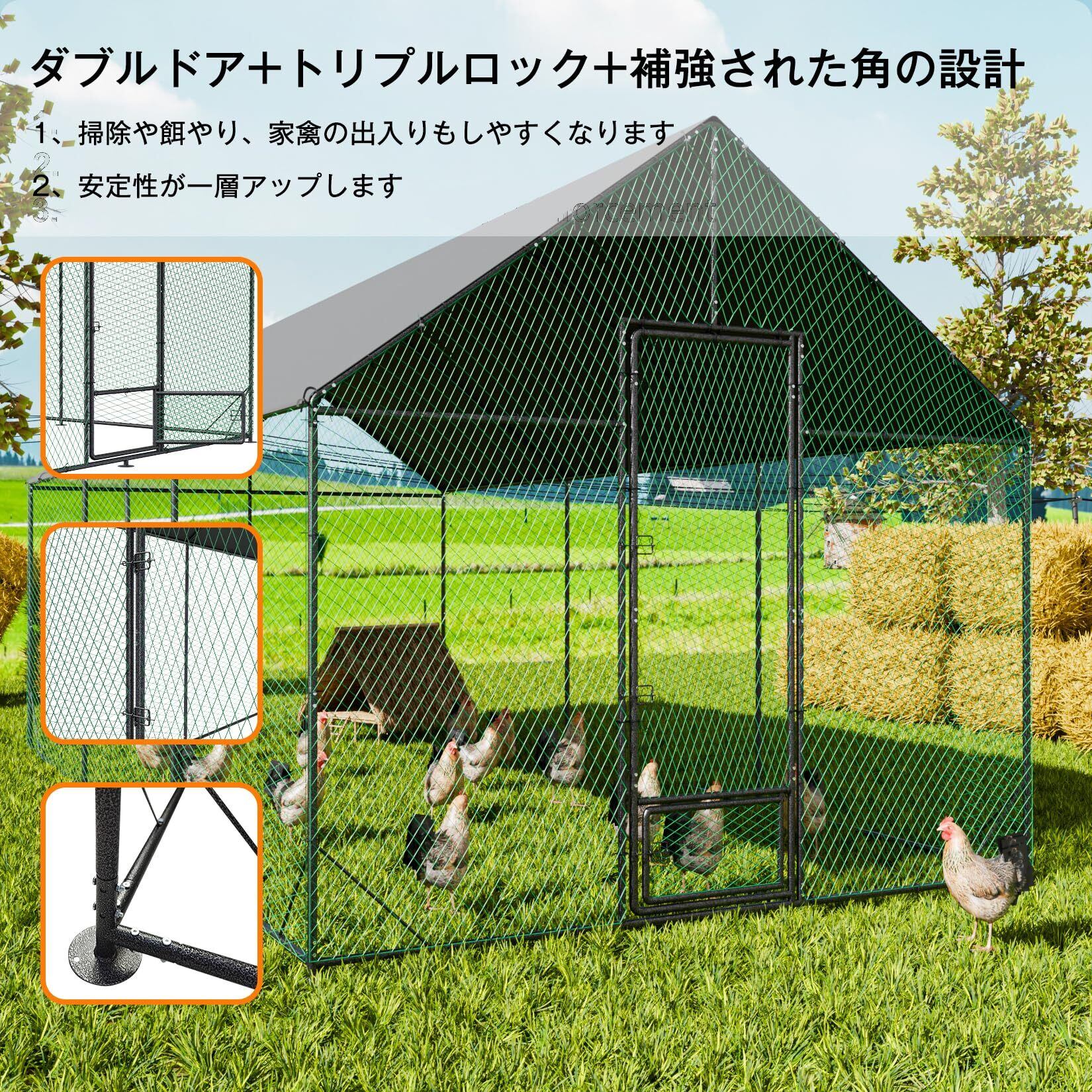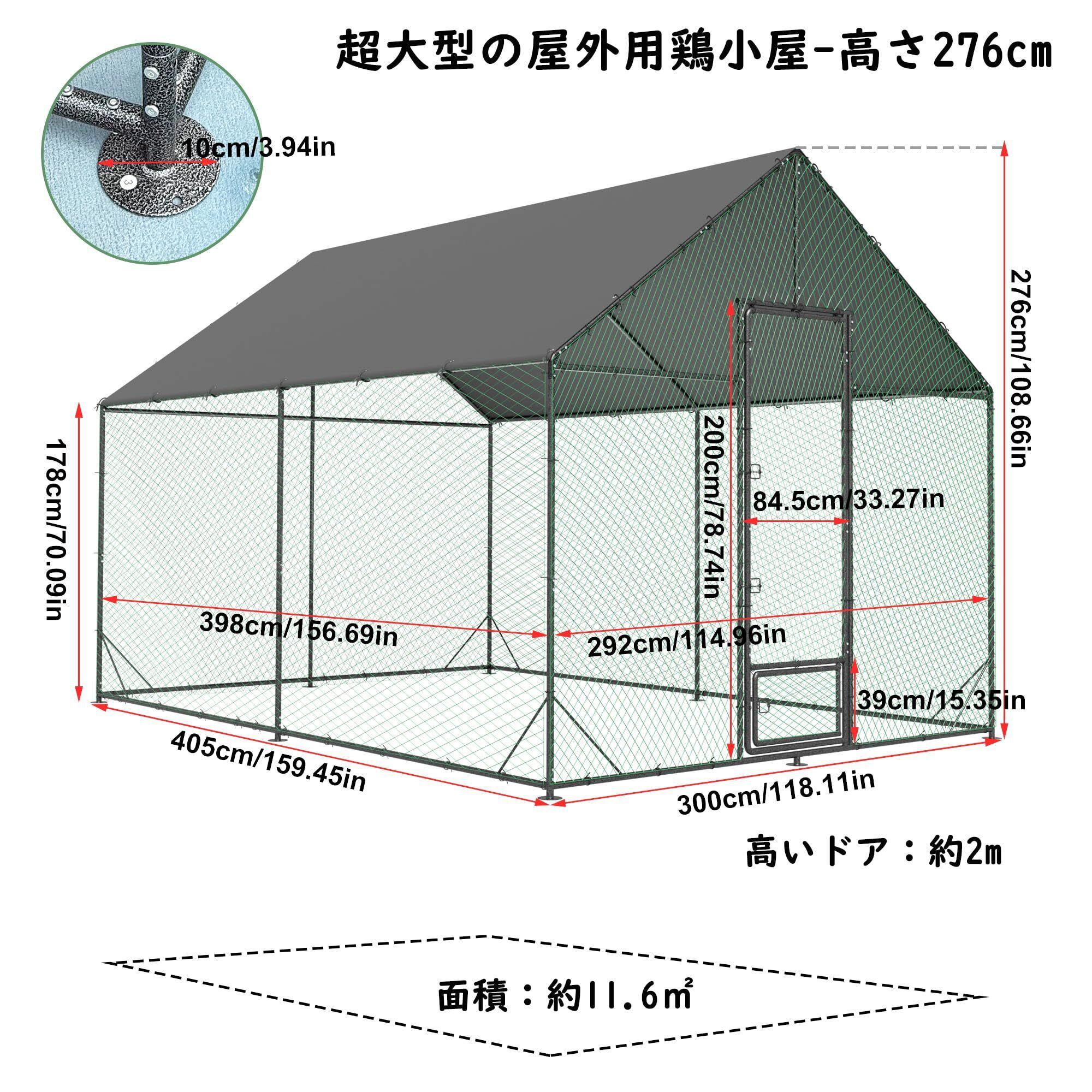 【大きいサイズで、より快適】超大型の屋外用鶏ケージのため、にわとりたちに約11.6㎡のプレイスペースを与えられ、鶏の屋外養殖に最適です。ご必要により、止まり木や産卵箱なども余裕をもって配置できます