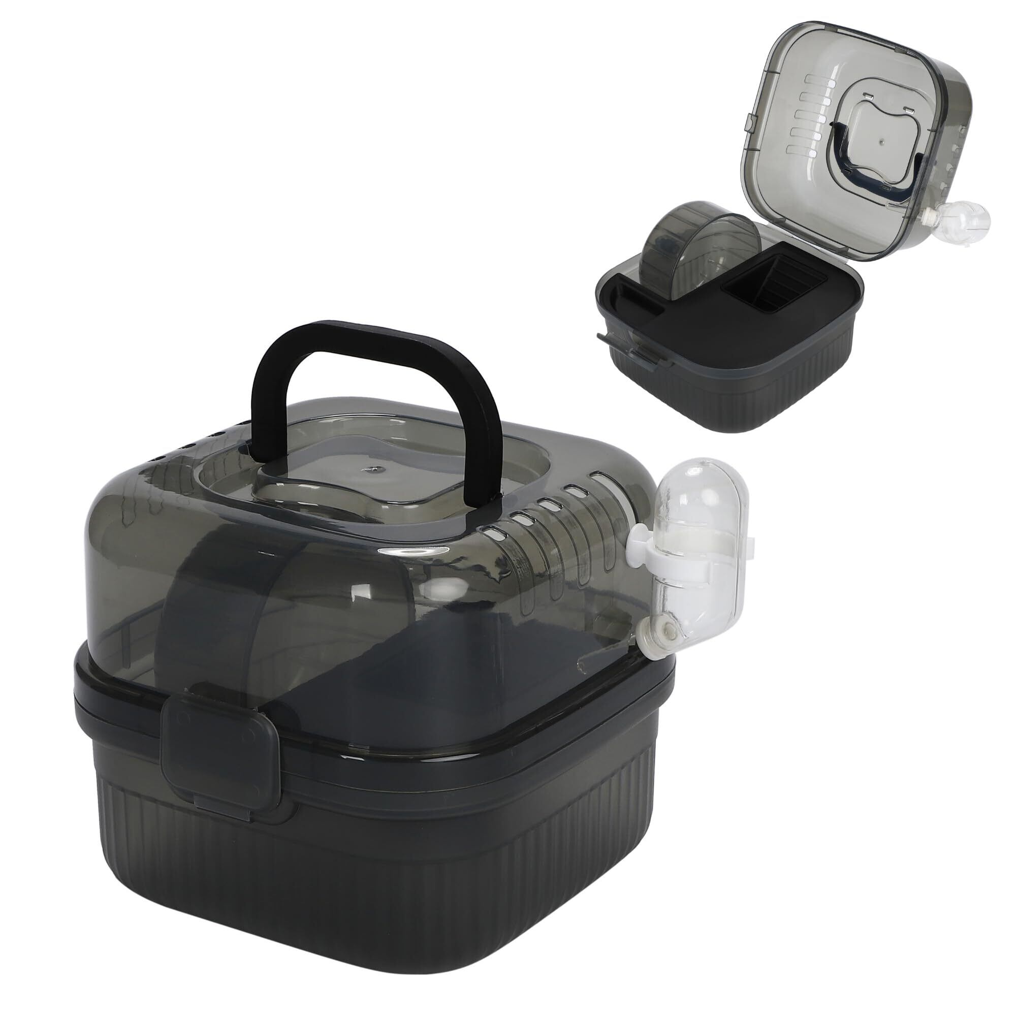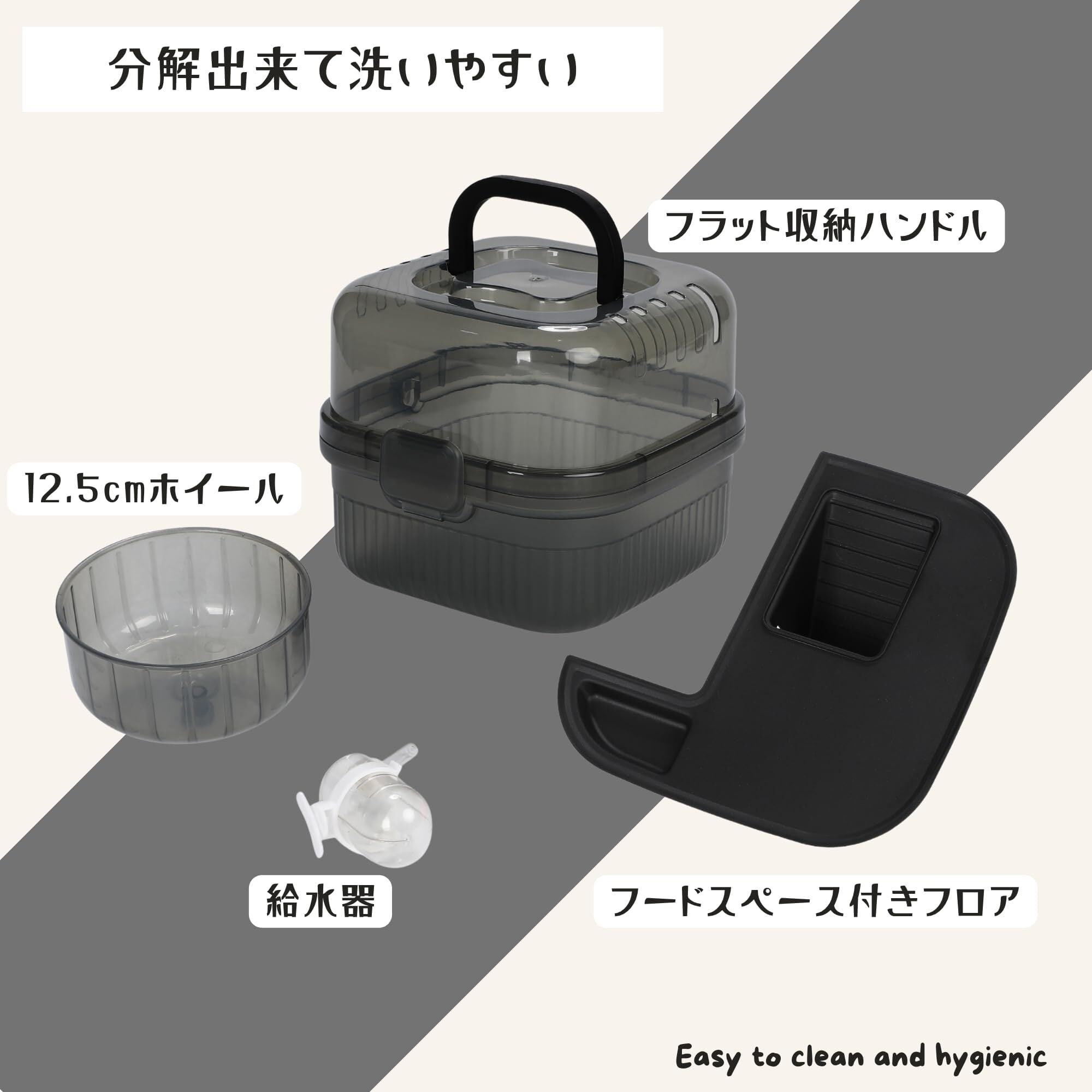 ハムスター キャリー ケージ 小動物 持ち運び おでかけ ケージ 移動用 チンチラ 滑車&給水器付き (ブラック)