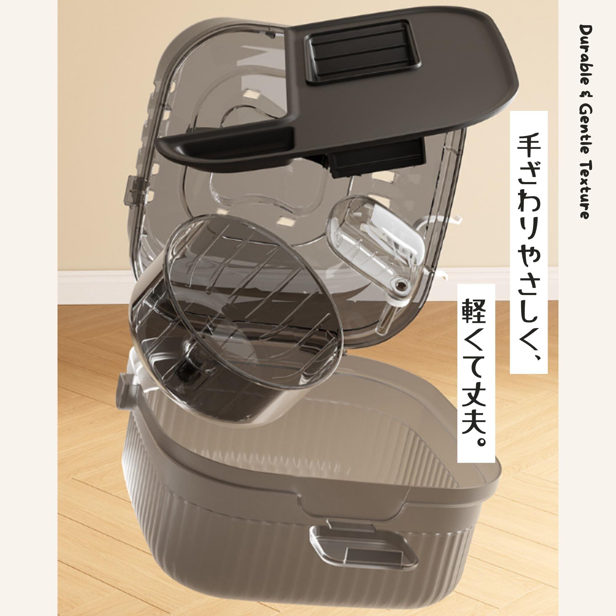 【固定給餌スペースと給水器付き】 固定の給餌スペースがあり、移動中も安定してエサを与えられます。給水器も付属しており、外出先でも水分補給が可能です。設置が簡単で掃除もしやすく、移動中のペットの快適さを維持できます。