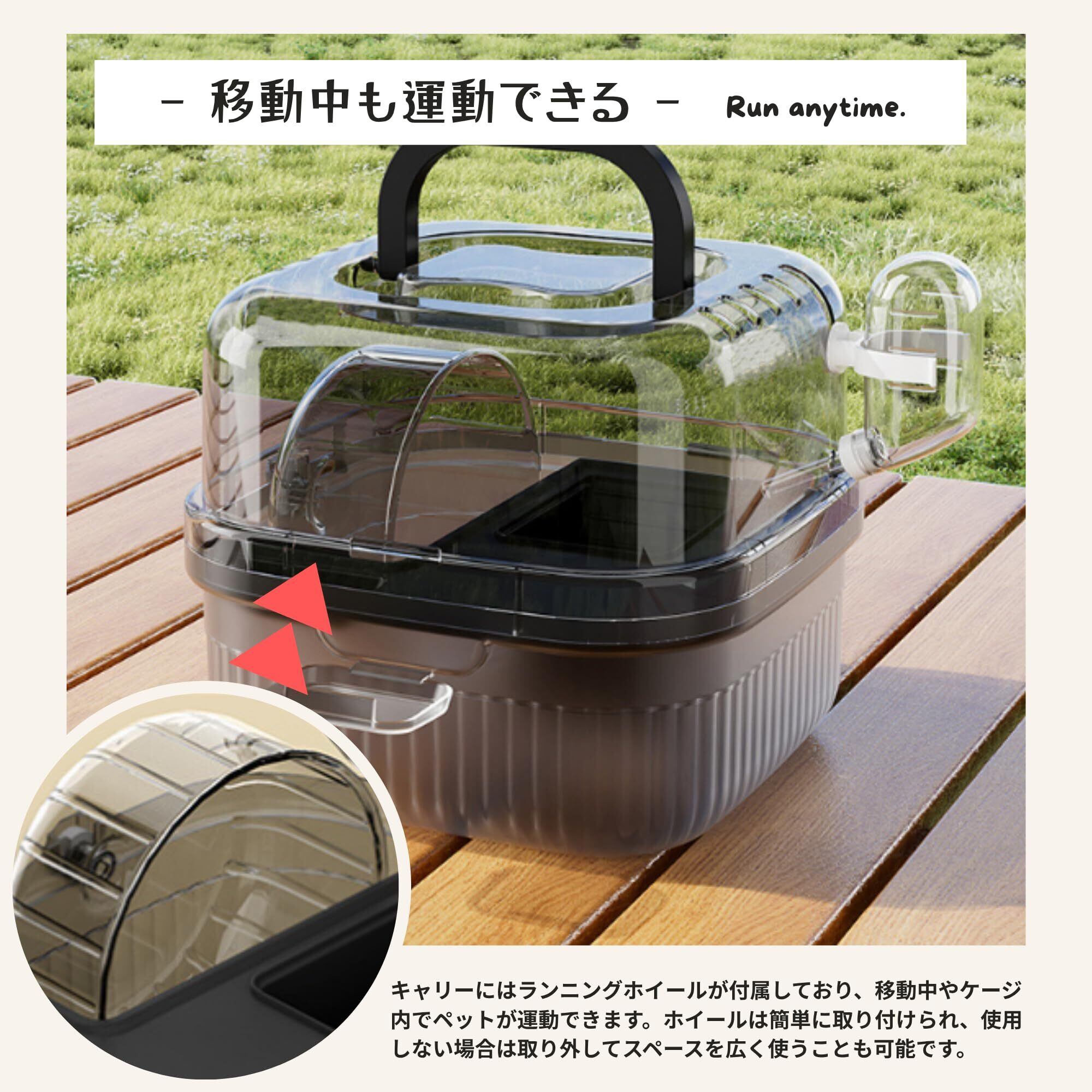 【ランニングホイール付きで運動可能】 キャリーにはランニングホイールが付属しており、移動中やケージ内でペットが運動できます。ホイールは簡単に取り付けられ、使用しない場合は取り外してスペースを広く使うことも可能です。飼い主が移動中でも小動物の運動不足を補える仕様です。