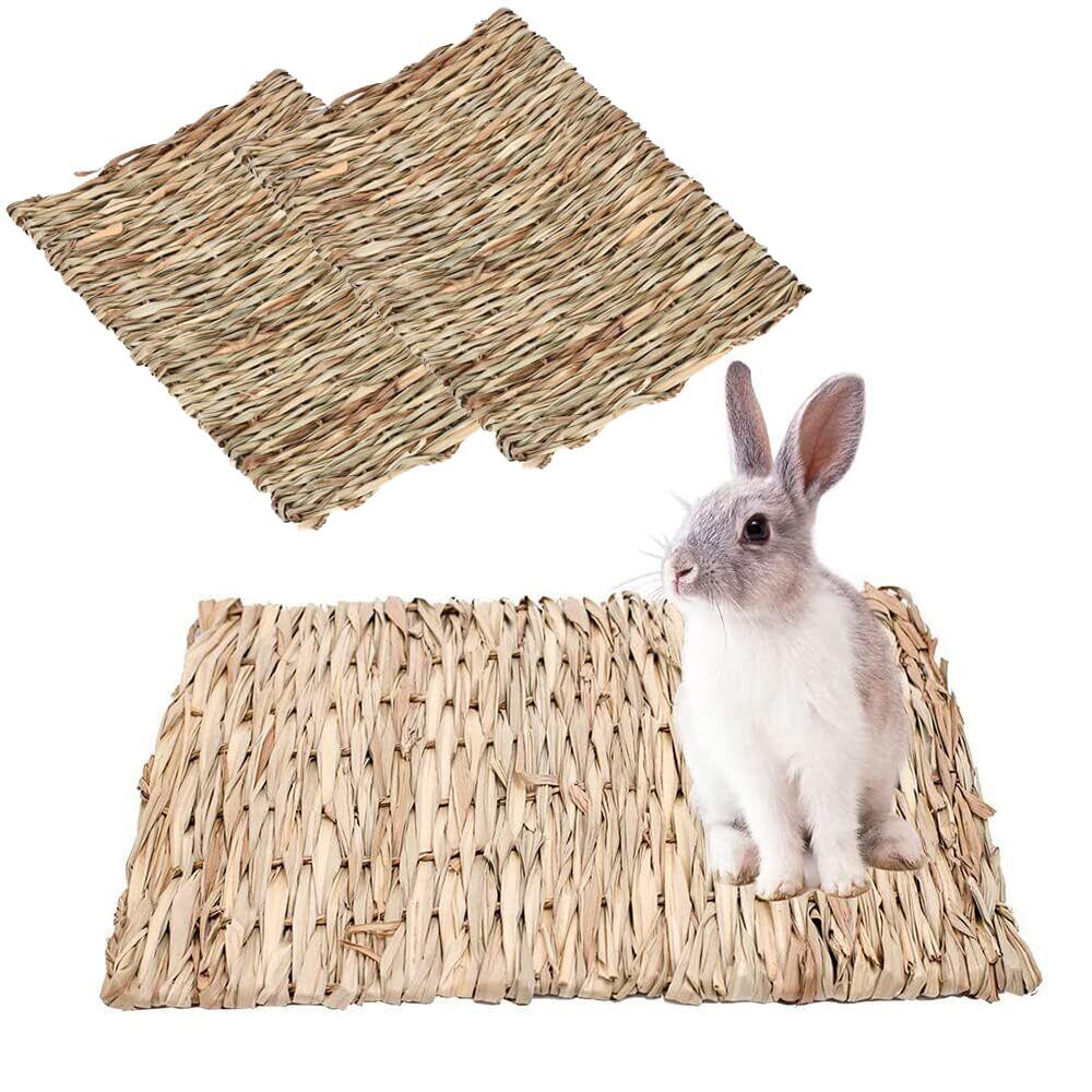 【広い適用】小動物用寝具マットは、干し草の織りの自然な感触が好きな小さなペットに適しています。歯を磨くおもちゃとしても使えます。この手で作った乾燥マットは食用で、研磨とゲームができます。