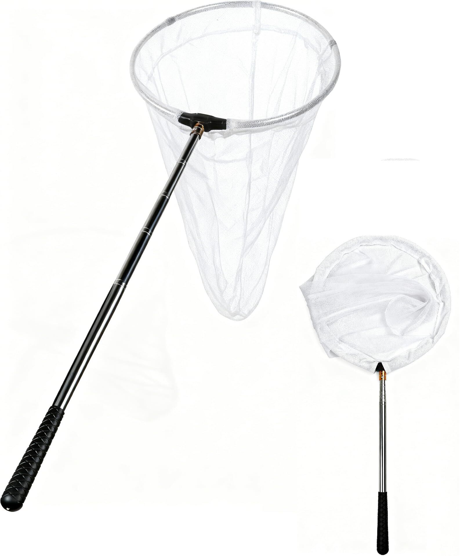 【在庫セール】虫取り網 折りたたみ 昆虫採集 昆虫捕獲ネット 直径28cm 大口径リング 5段伸縮ハンドル 40~150cm 子供大人兼用 蝶・トンボ・小魚・鳥類捕り ステンレス製ポリエステルネット 50cm網深さ 網目2mm 収納簡単 プロ用捕虫網