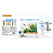 別売のクリアLEDフラッティを取り付けられる専用フタをセット。お部屋の中でも気にならない静音性能、ろ過材交換・メンテナンスも簡単なので、これまでよりもより快適にアクアリウムを楽しめます。