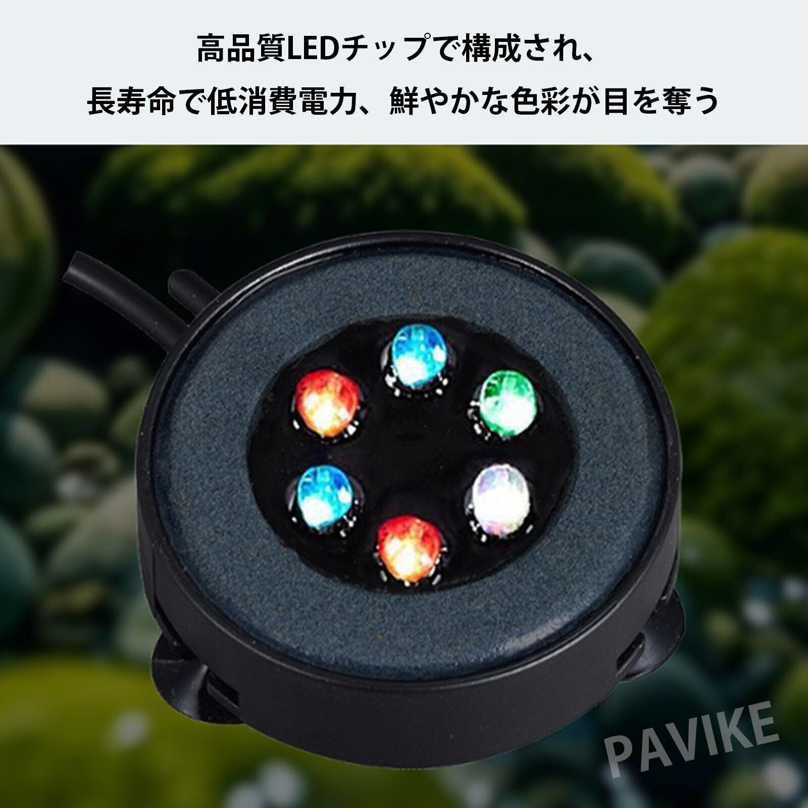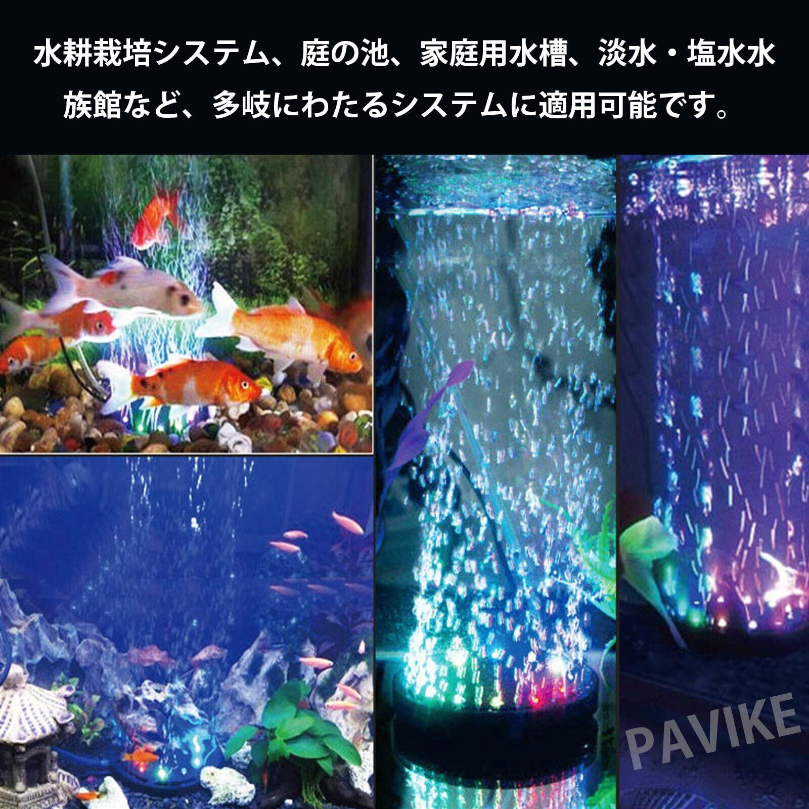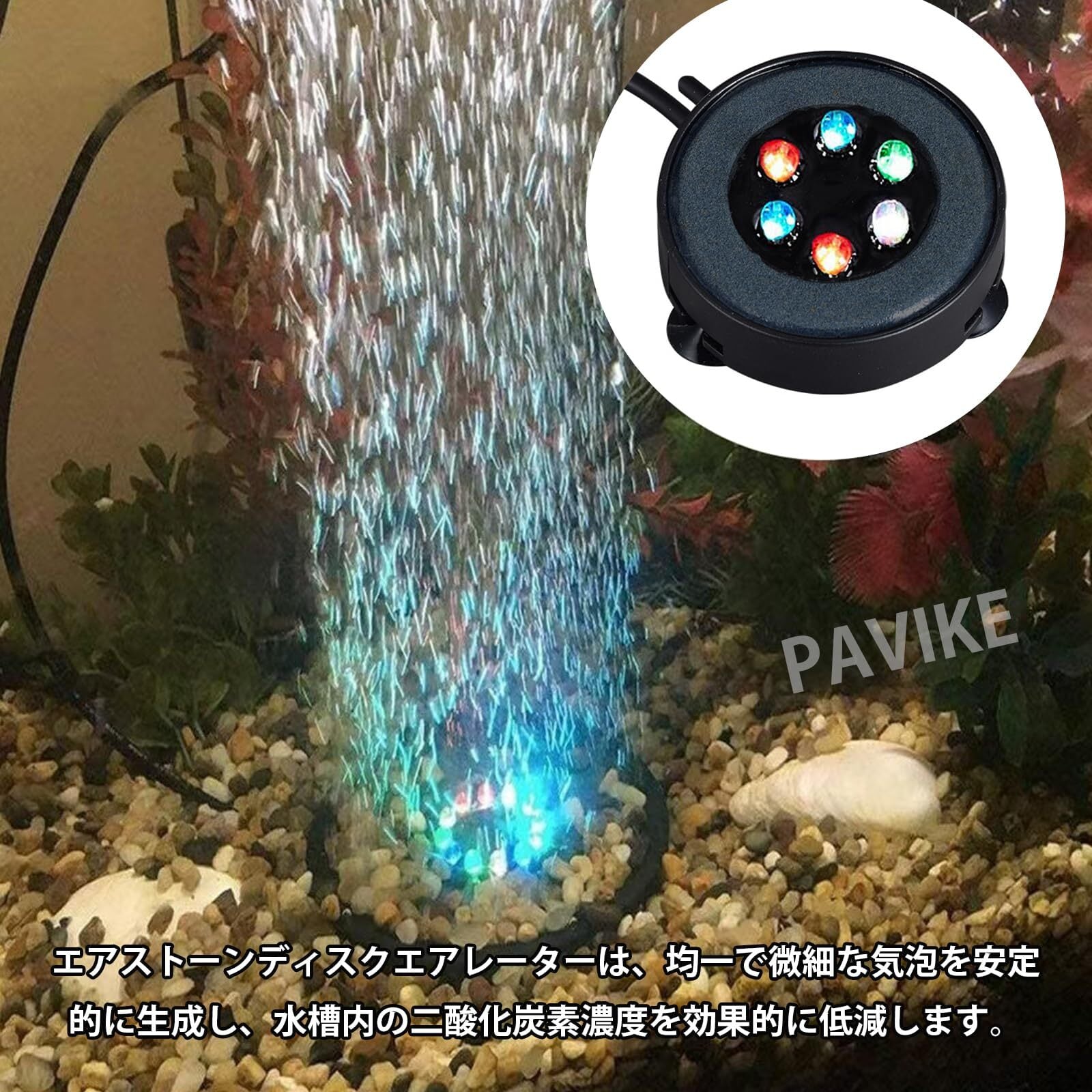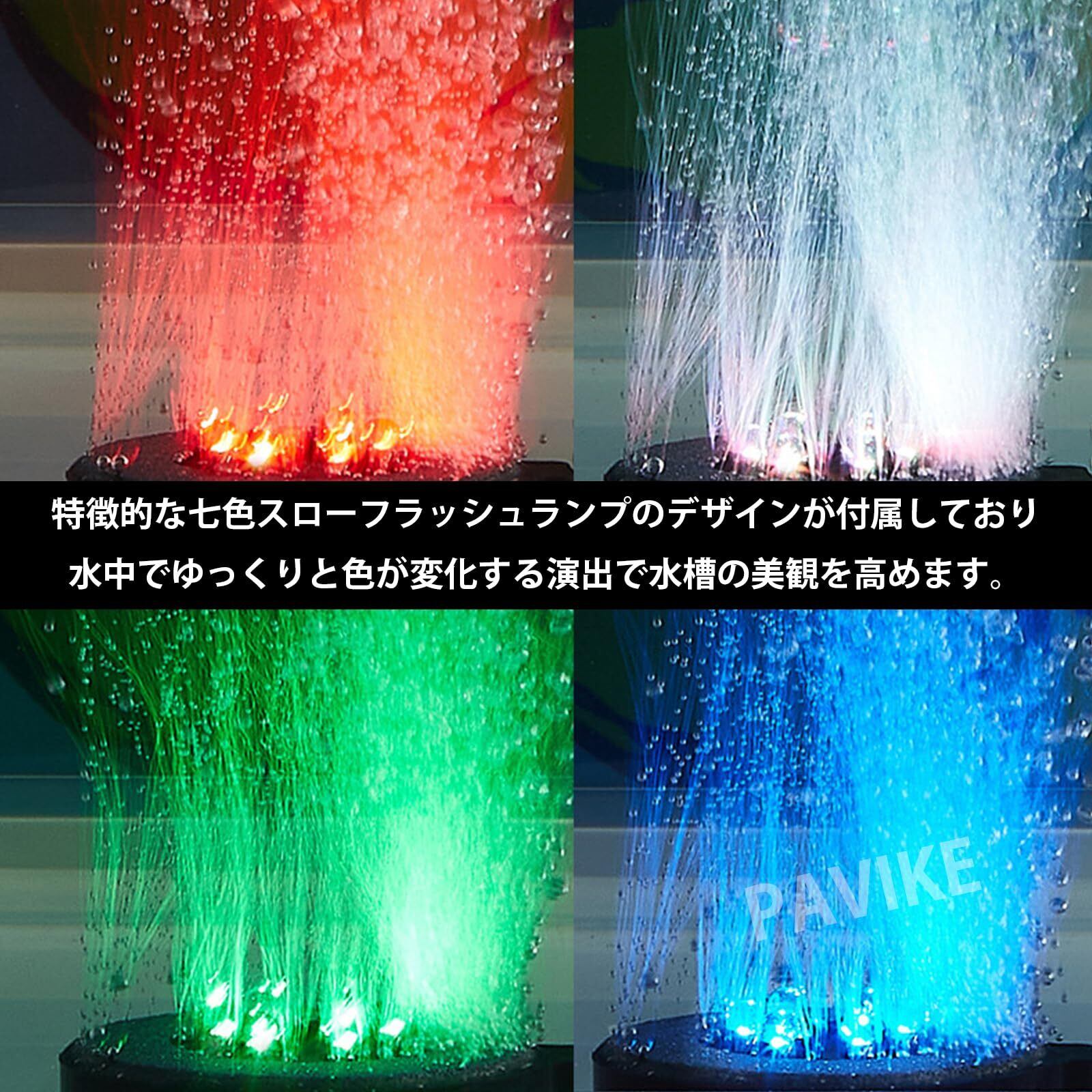 PAVIKEエアレーション 水槽 水槽空気石 水槽 ポンプ usb 水族館の造園装飾、吸盤付き、7色のゆっくり点滅するライトデザイン、水族館、水槽、池、その他のシーンに適し
