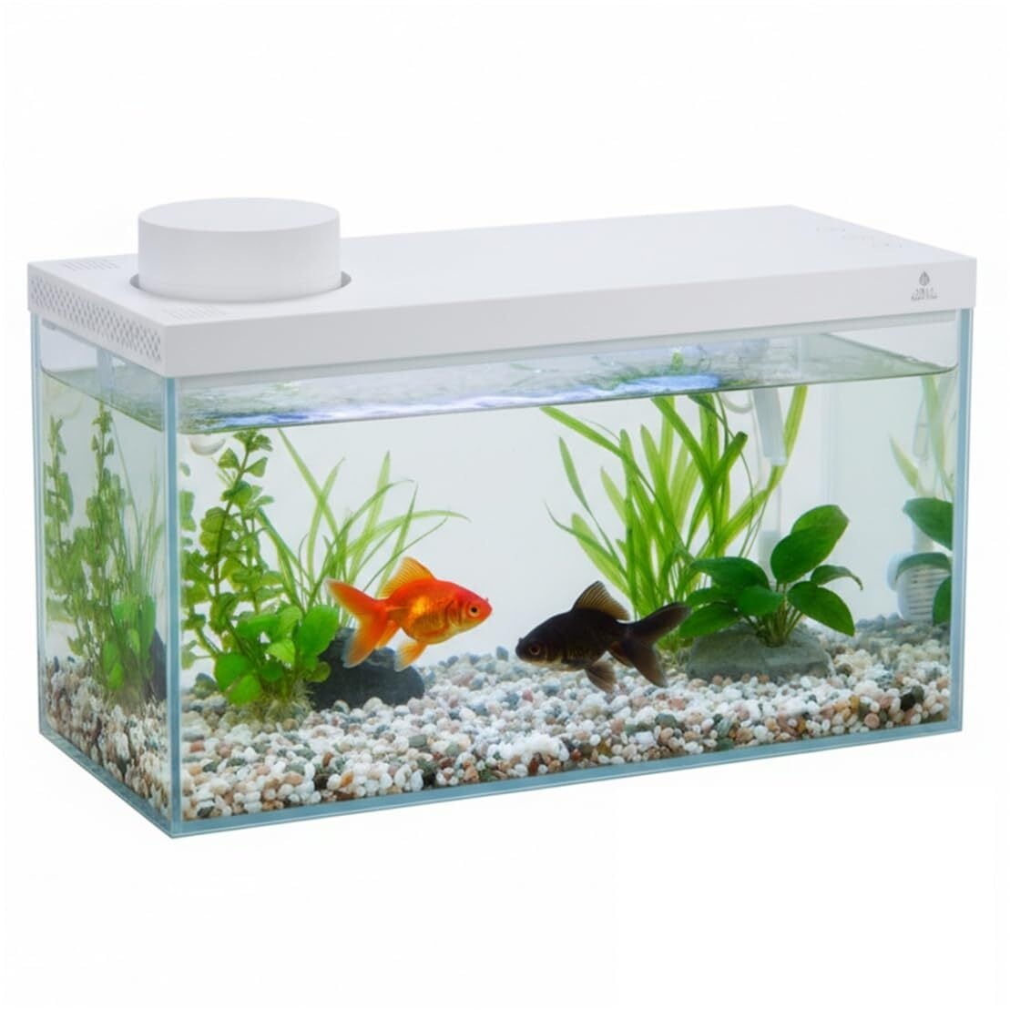 小型 オールインワン スマート水槽 |多機能 コンパクト ガラス製 自動給餌・LEDライト・濾過・温度確認付き 初心者でも簡単 ホワイト(白)アクアエデンティア