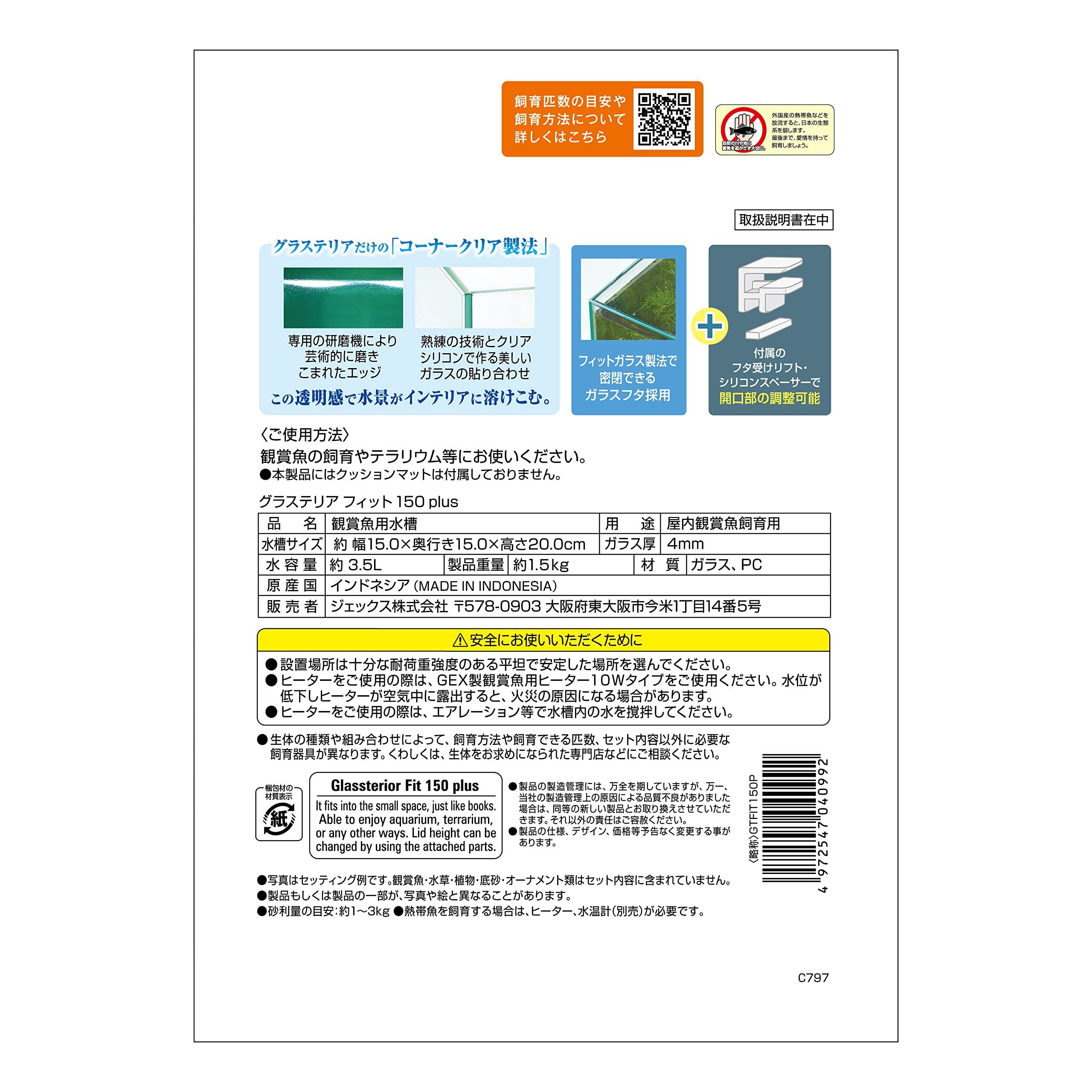 【数量限定】ジェックス GEX AQUARIUM グラステリア フィット 150 plus フレームレス水槽 ガラスフタ付