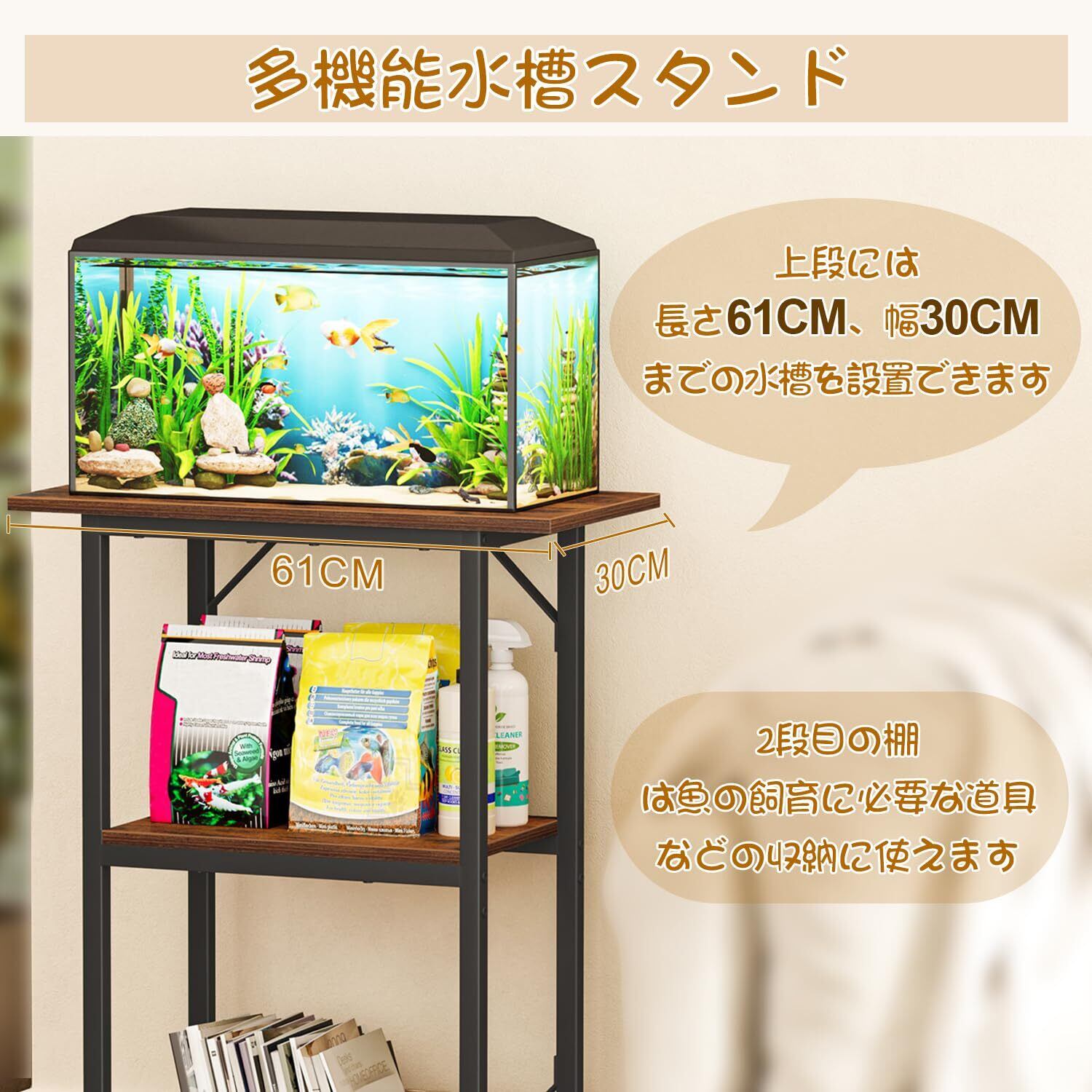 Snughome アクアリウムスタンド 60cm 水槽対応 耐荷重 150kg 2 段収納棚付き 水槽台 幅 61× 奥行 30× 高さ 78cm アクアリウムラック 飼育用品収納