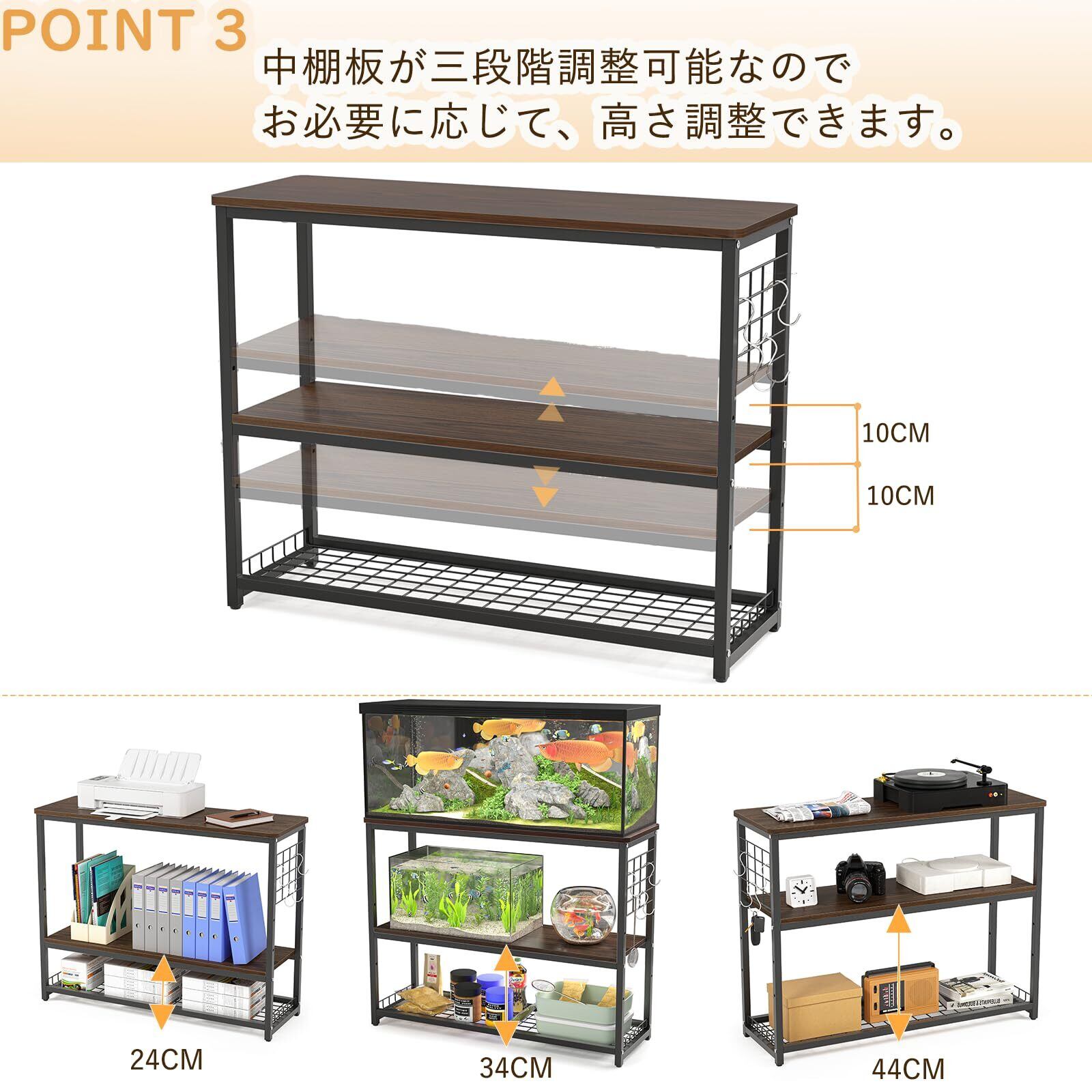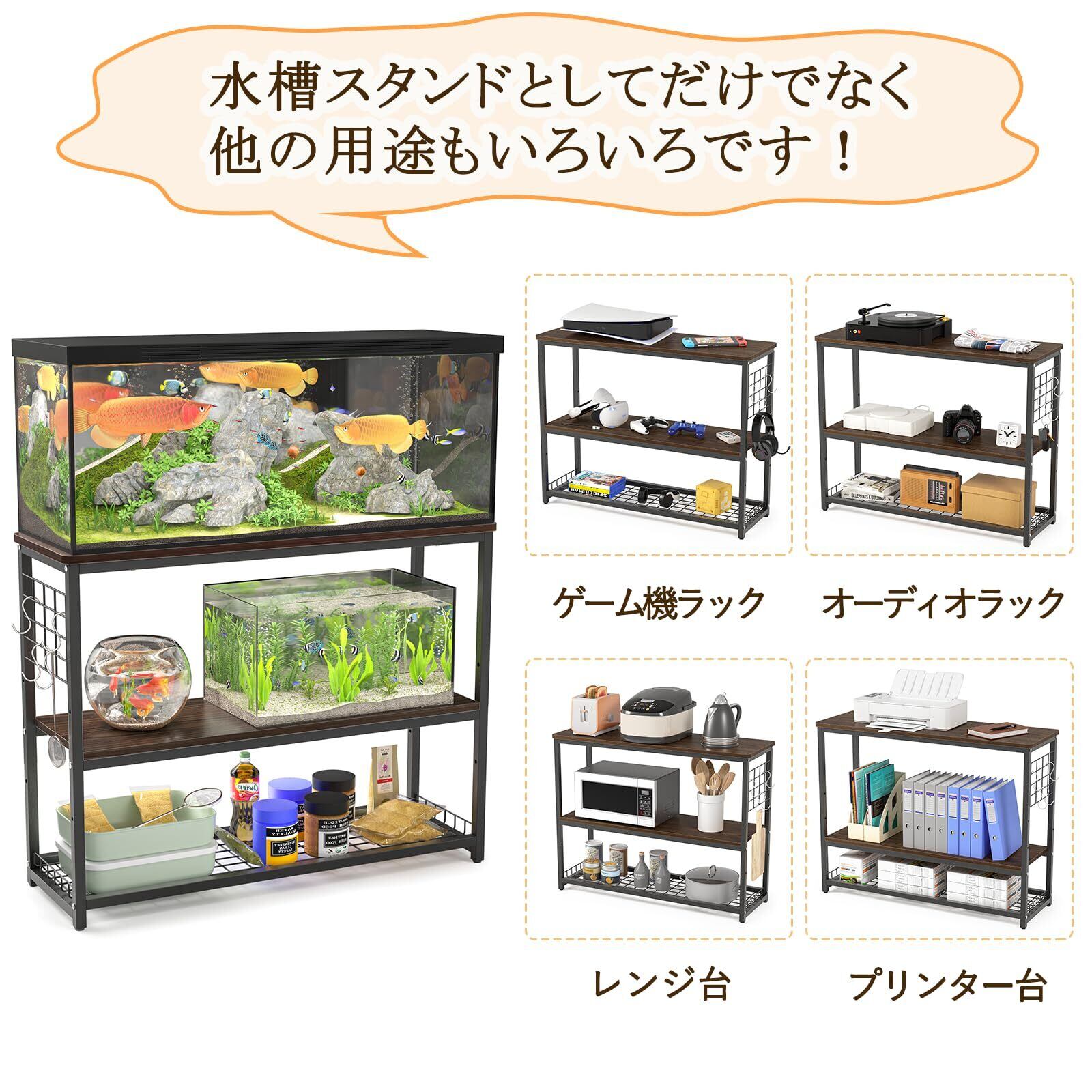 【中棚板高さ調整可】水槽スタンドの中棚板の位置が3段階調節できて、用途に合わせて適当な高さを調整できます。またご必要に応じて、水槽台としてだけでなく、プリンター台、オーディオラック、レンジ台、ゲーム機収納ラックなどとしてもOKです!