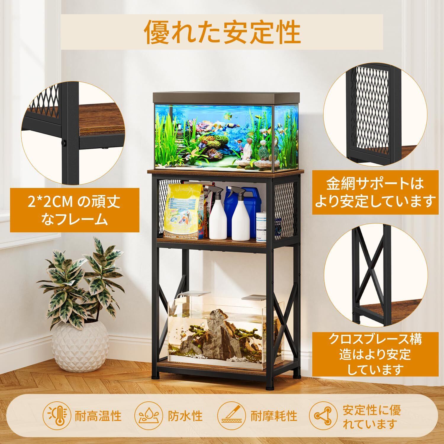 【特価商品】Snughome 水槽台52cm水槽対応 耐荷重 160kg 3段収納棚 木製天板+金属フレーム アクアリウムスタンド 幅 52× 奥行 29× 高さ 78.5cm