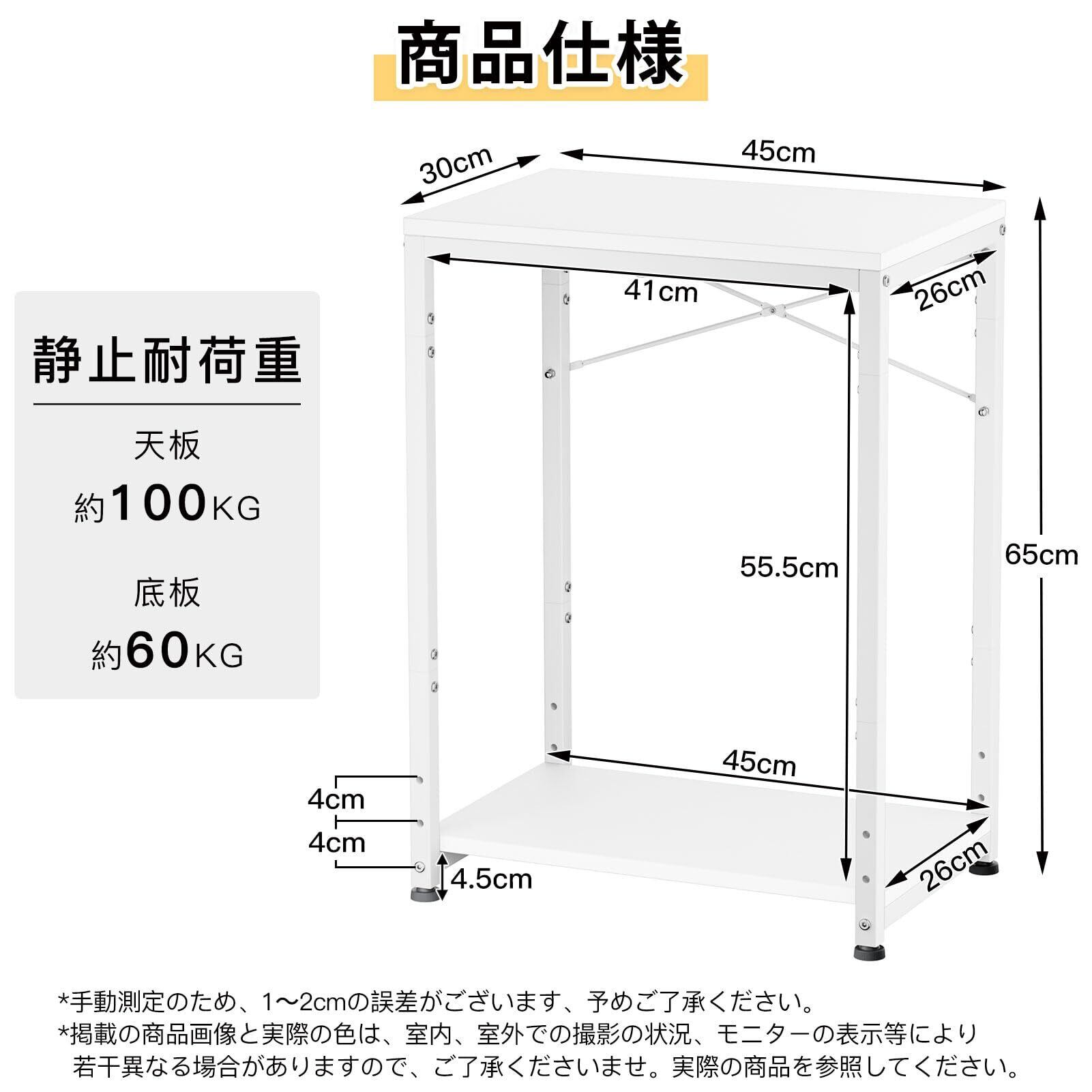 【商品仕様】 ➤サイズ:約幅45×奥行30×高さ65cm(アジャスターを付けた状態) ➤材質:パーティクルボード/メラミン化粧板、フレーム/スチール(粉体塗装) ➤耐荷重:約天板100kg、下棚板60kg