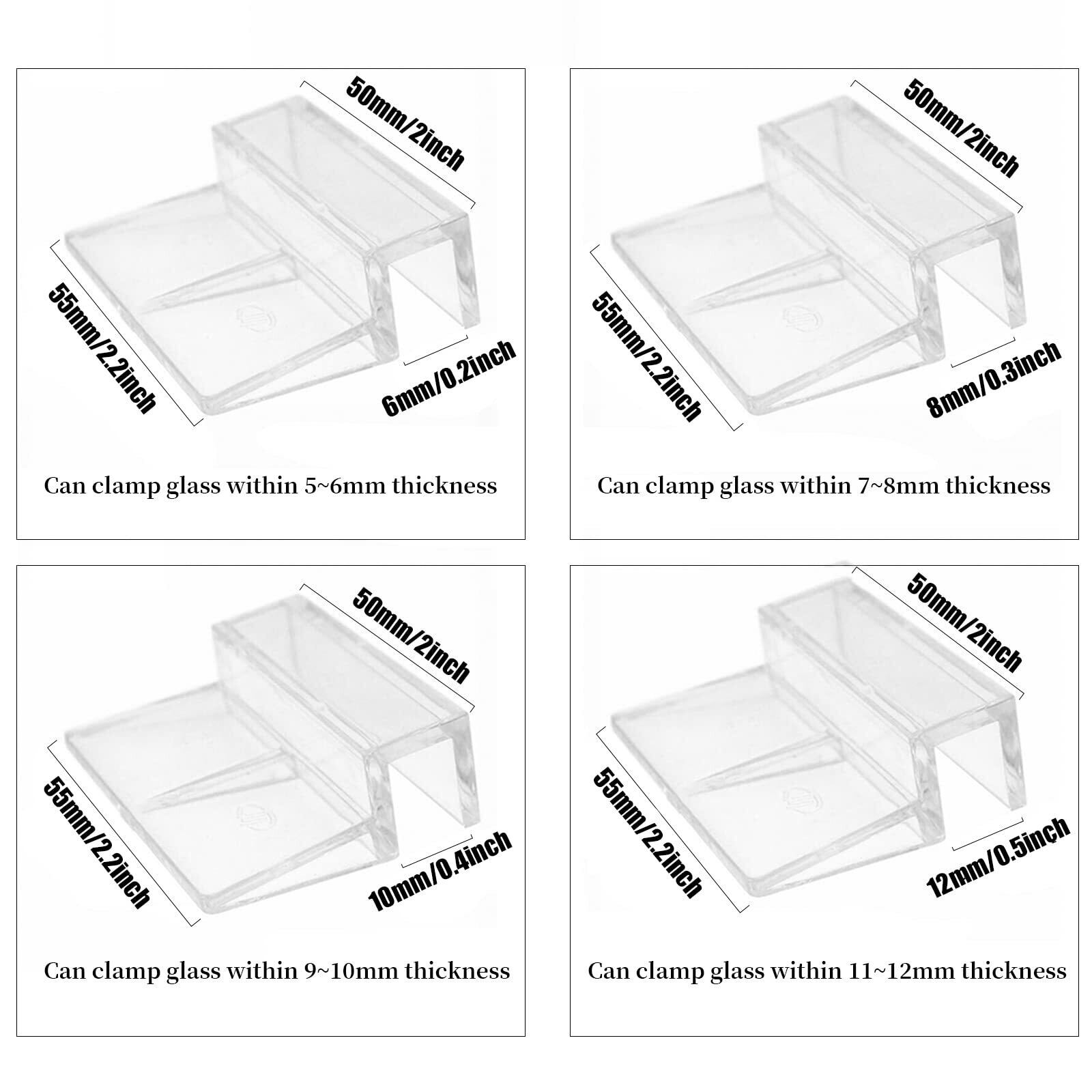 水槽 蓋受け 8個セット 透明 アクリル 水族館水槽用 水族館の蓋スタンド 蓋 クリップ ブラケット カバーホルダー 滑り止め ガラスカバーブラケット クランプアクセサリー 6mm 8mm 10mm 12mm (8mm)