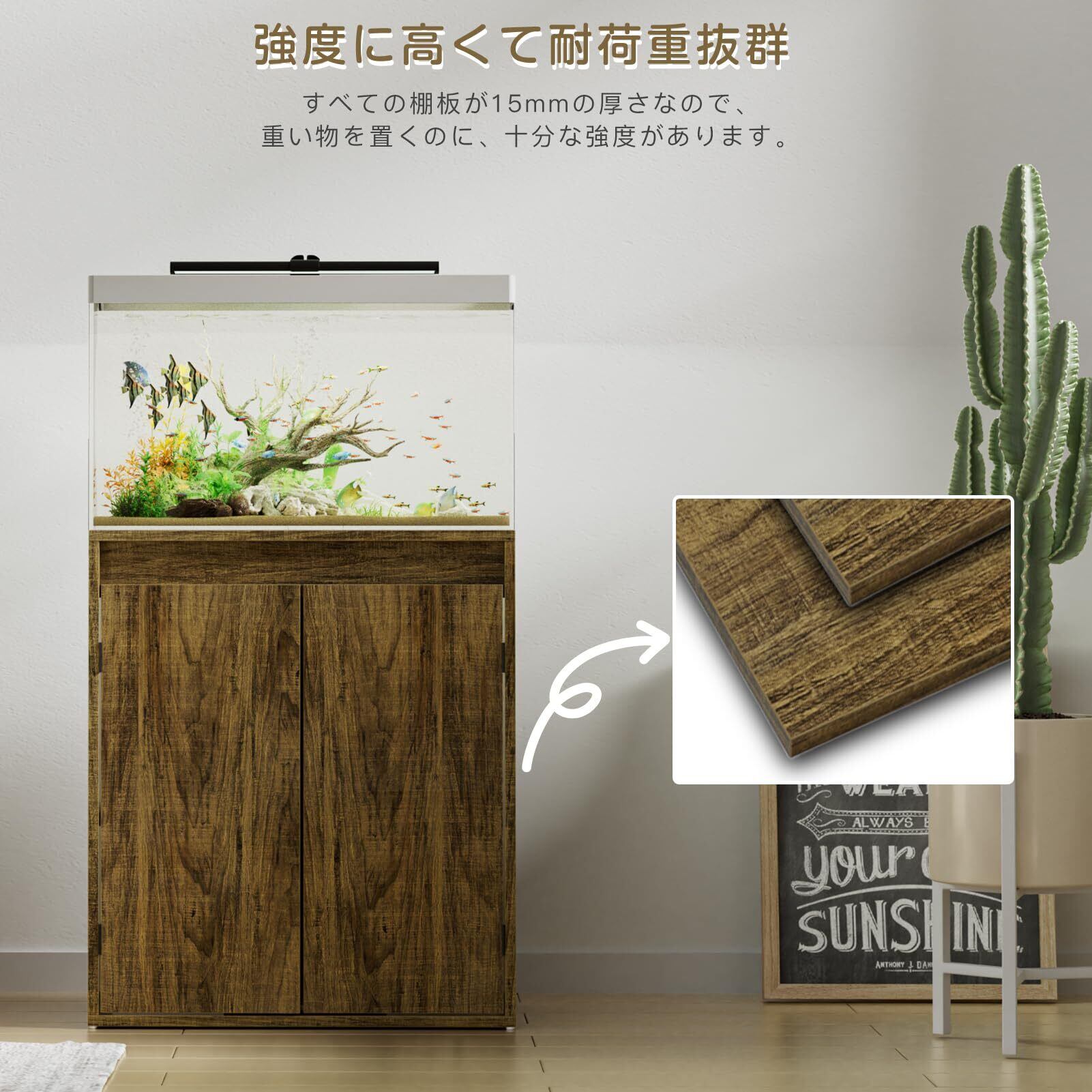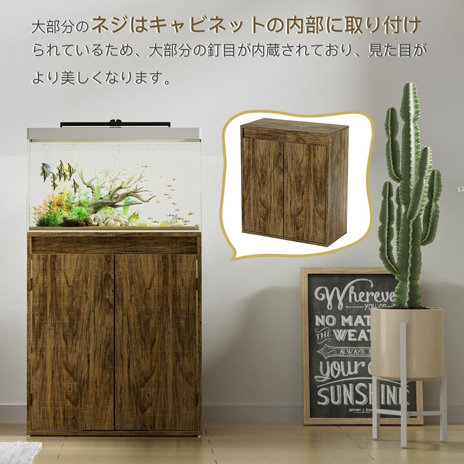 【美しいデザイン】水槽台はすべて木の板で作られており、大部分のネジはキャビネットの内部に取り付けられているため、釘目が内蔵されており、見た目がより美しくなります。整体がシンプルでエレガントに見えます。