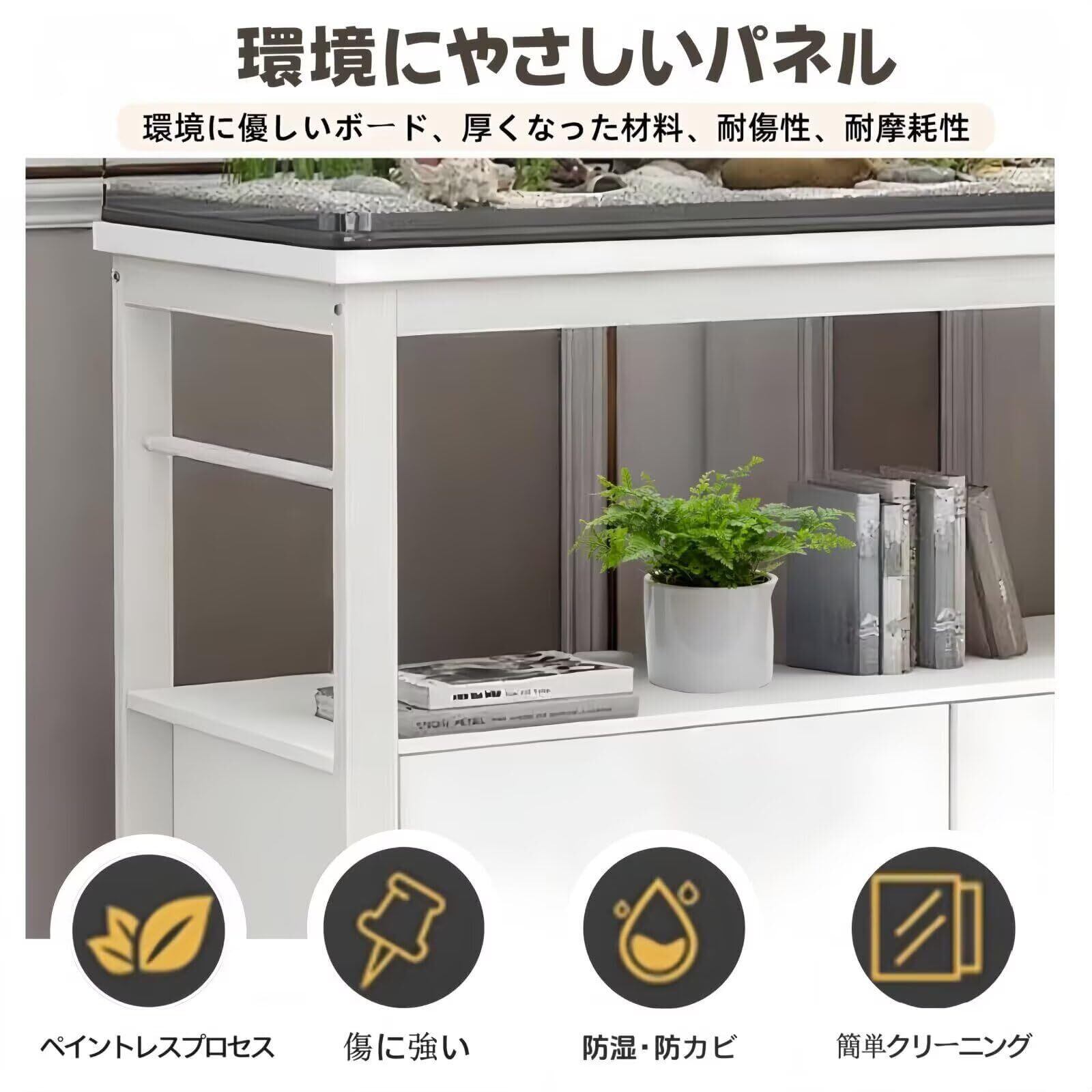 【様々なご用途】この水槽台広い天板を装備、収納はたっぷりあるのできます。水槽の収納はもちろん、オフィス、書斎、寝室、キッチンやリビングなどで生活用品や事務用品を収納こともできます。様々な場所で活躍!