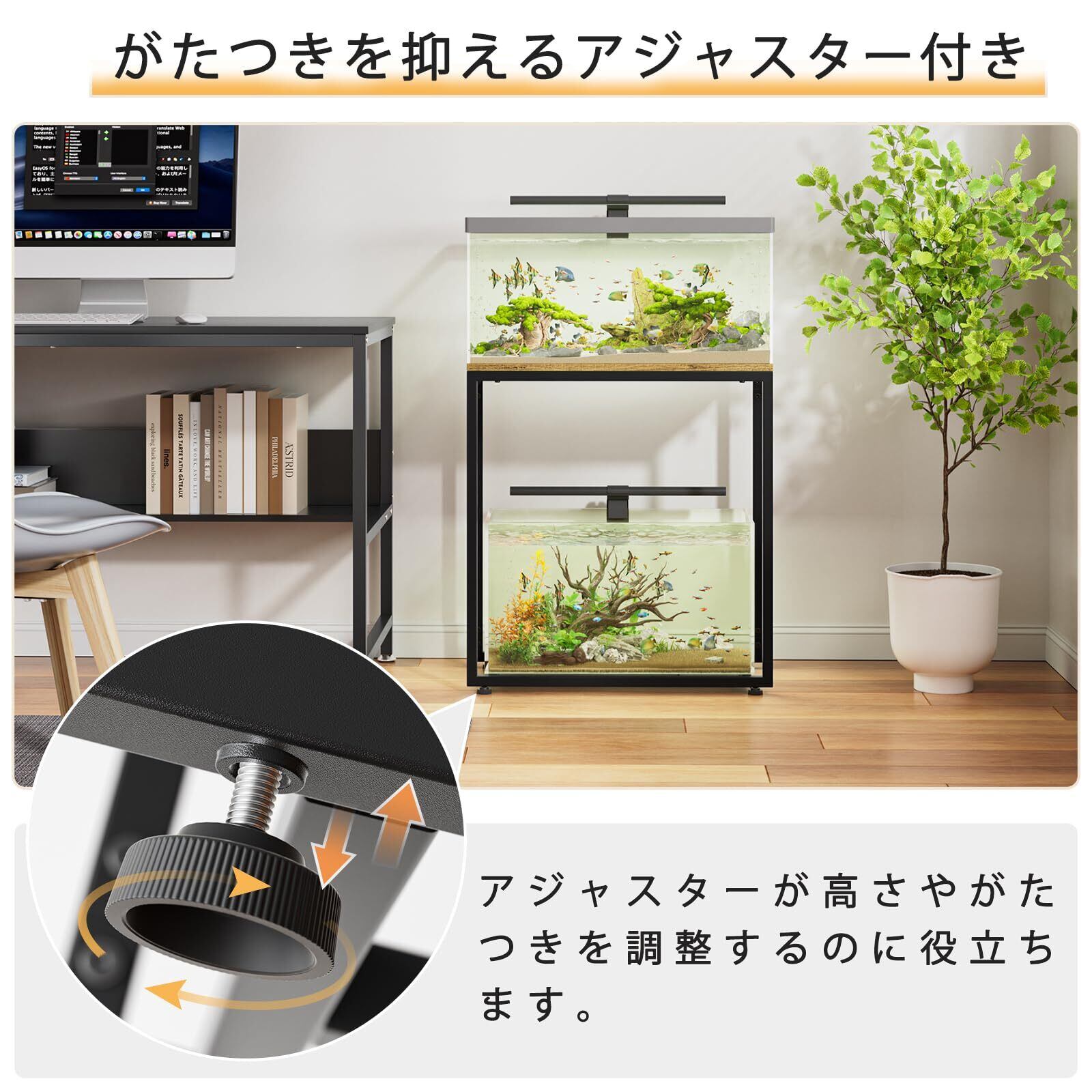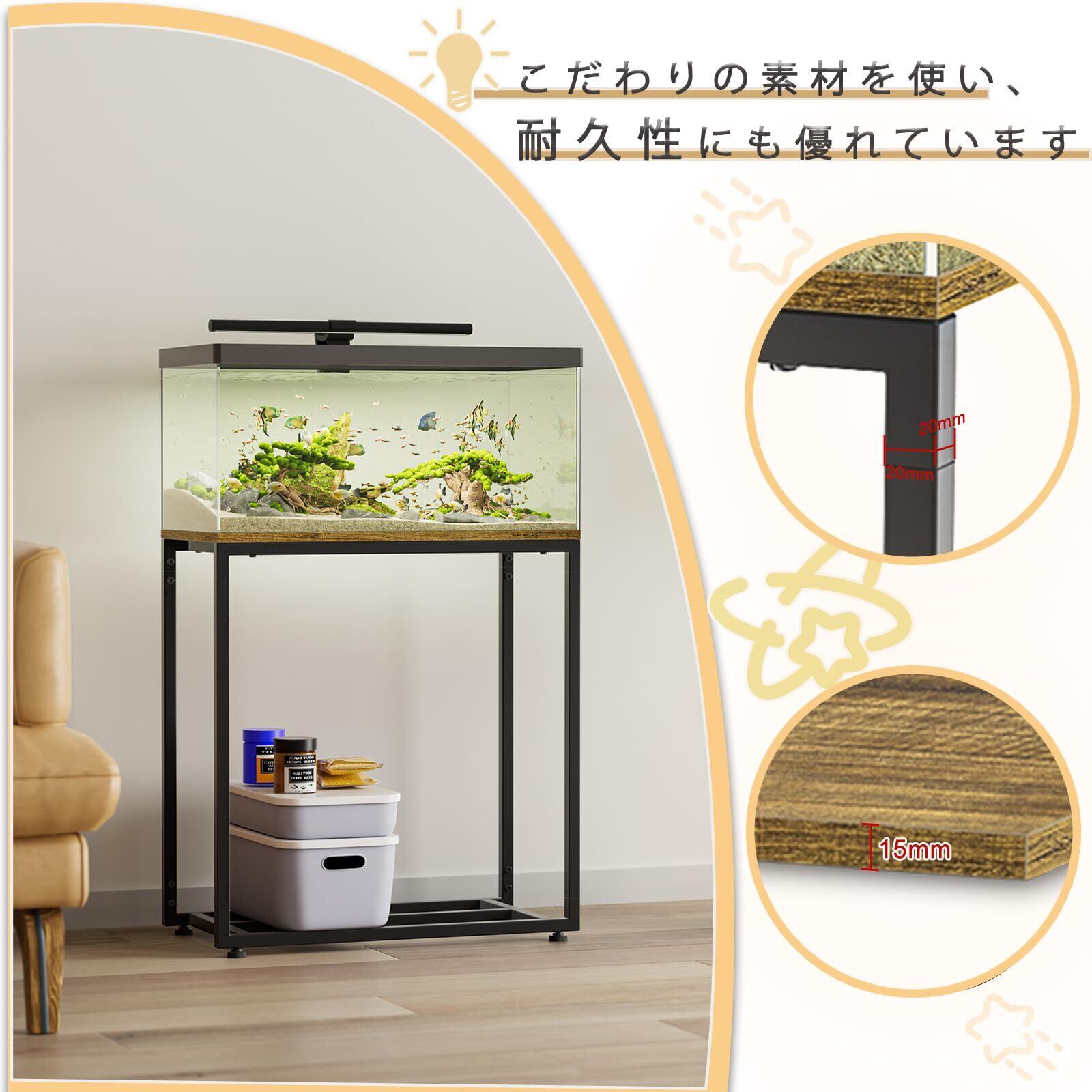 【幅広い収納スペース】天板には水槽を置くことができ、板面のスペースが広く、60*30の水槽を簡単に置くことができ、魚の鑑賞や給餌が便利です。 魚の餌、漁網、水槽ブラシ、水槽ライト、ポットなどを下棚に置いて便利に取り出せることができます。