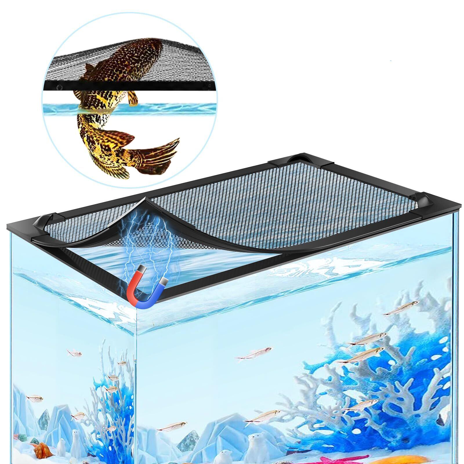 【数量限定】DIY マグネット式 水槽 蓋 脱走防止ネット 60×30cm対応 魚・カメ・爬虫類用 強力磁石調整可能なサイズ 簡単取り付け(水槽は含まない)
