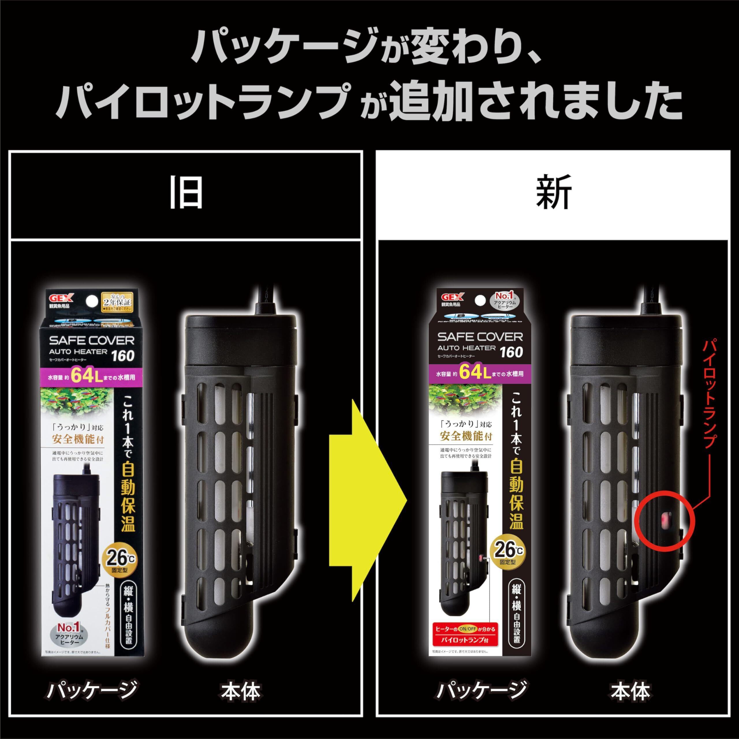 ジェックス GEX AQUA HEATER セーフカバーオートヒーター 160 26℃自動保温 縦横設置 安全機能付 SP規格適合 2年保証 約64L以下の水槽用 160W