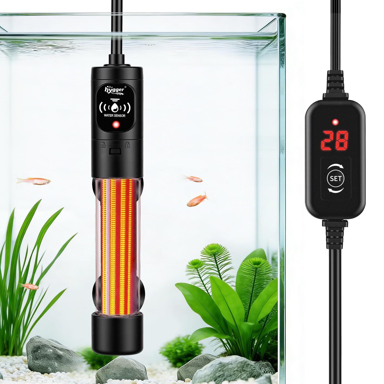【新春セール】hygger 水槽 ヒーター 15~34℃調節 過熱保護 省エネ 縦横設置対応 吸盤式 115-152L水槽対応 ベタ メダカ 金魚 熱帯魚 200W
