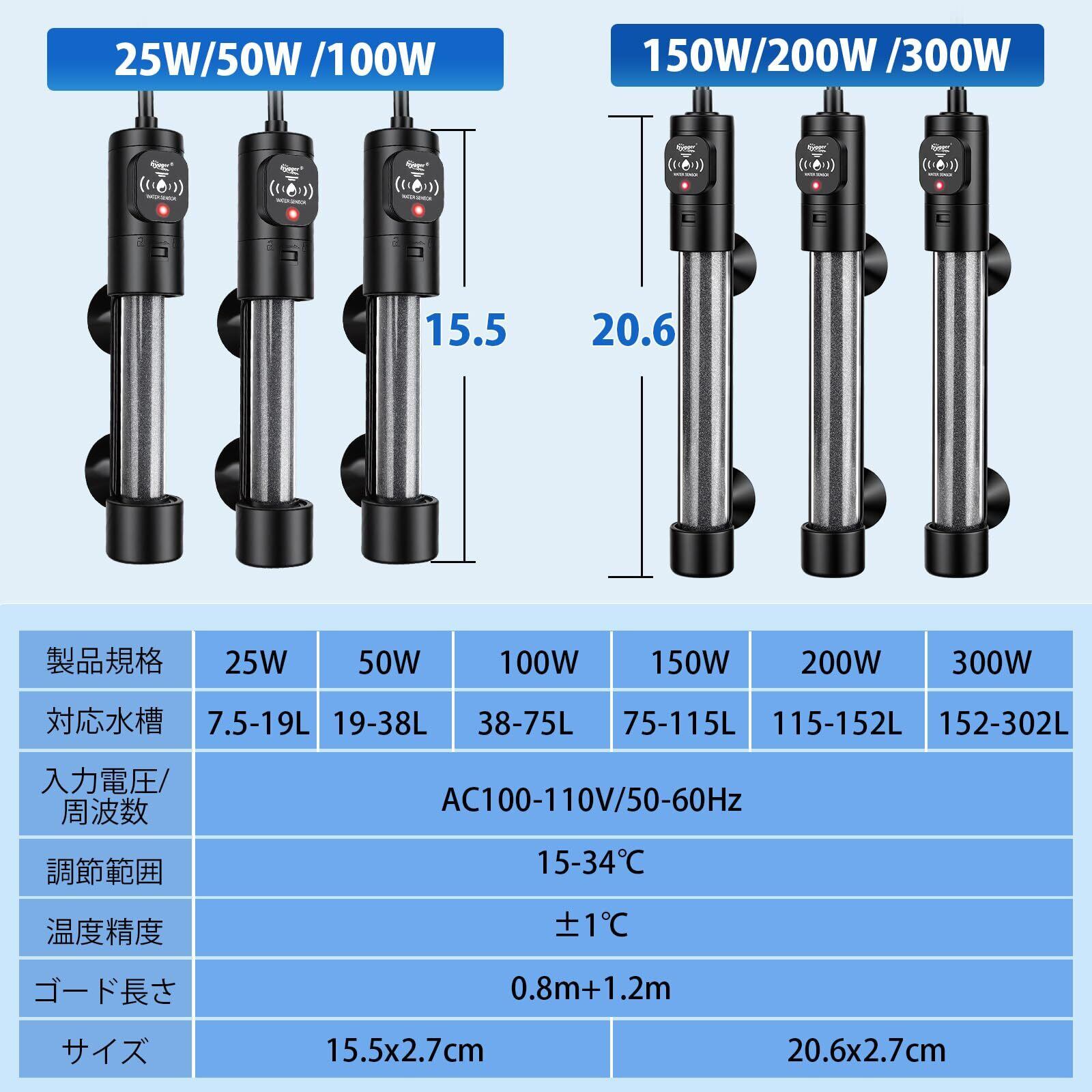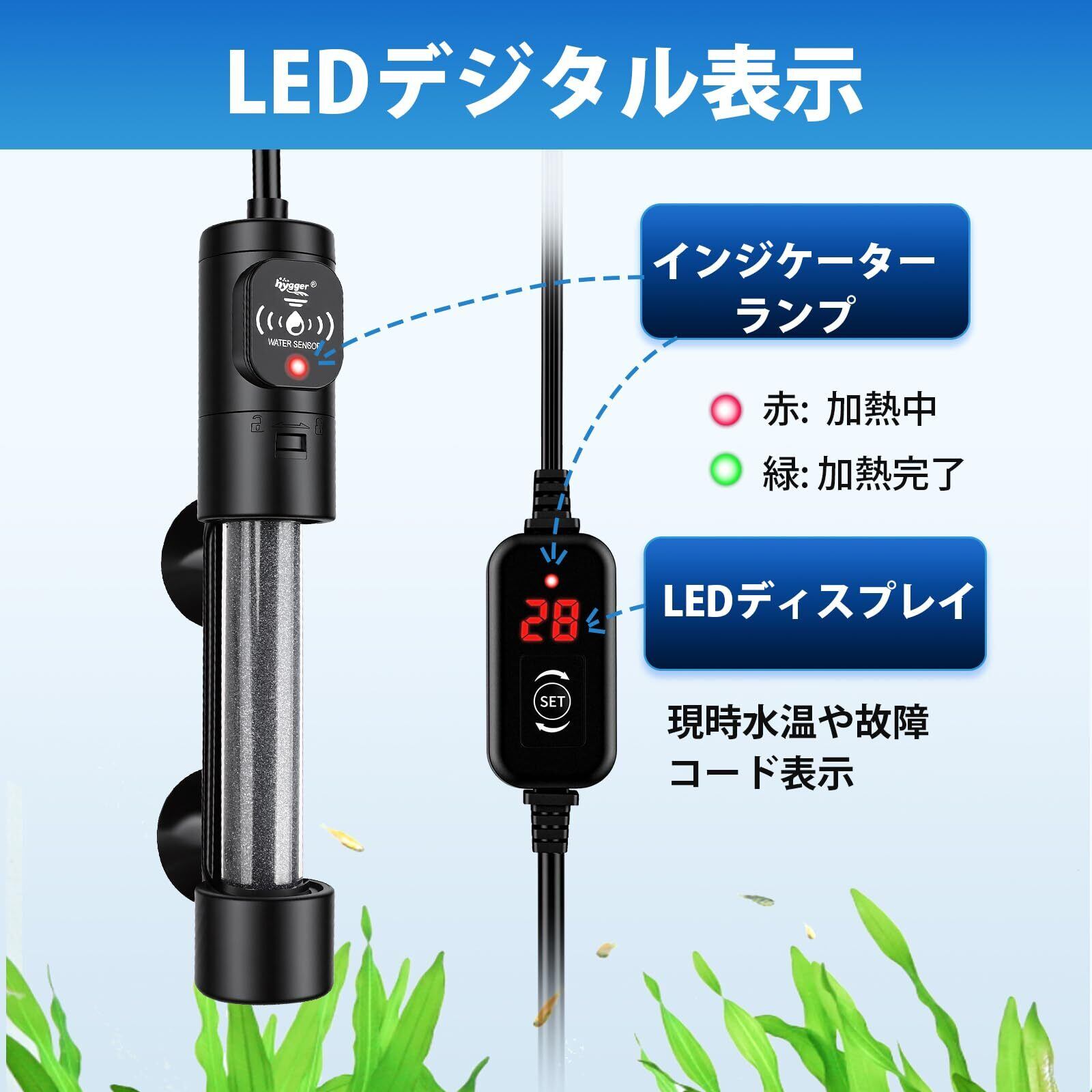 hygger 水槽 ヒーター 15~34℃調節 過熱保護 省エネ 縦横設置対応 吸盤式 115-152L水槽対応 ベタ メダカ 金魚 熱帯魚 200W