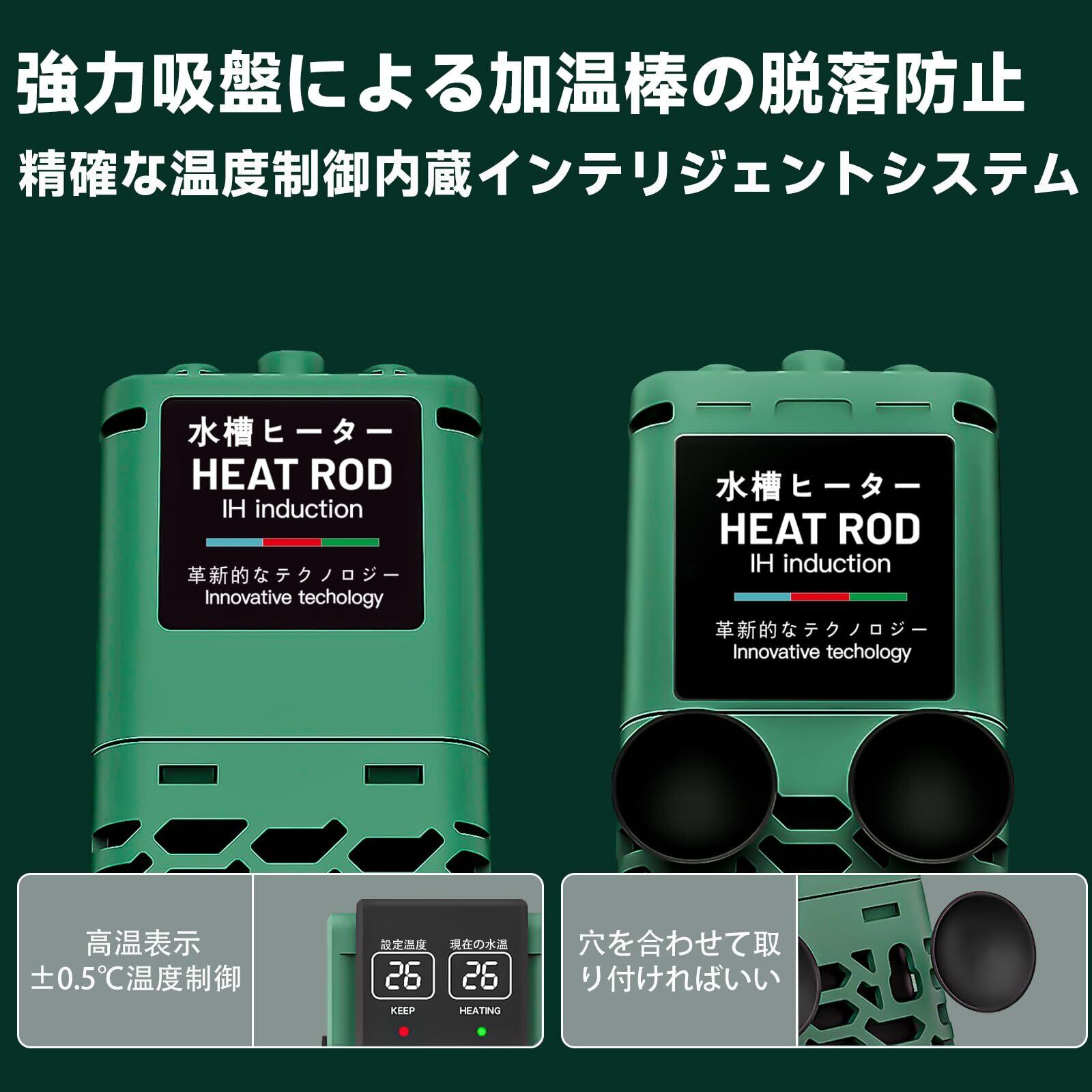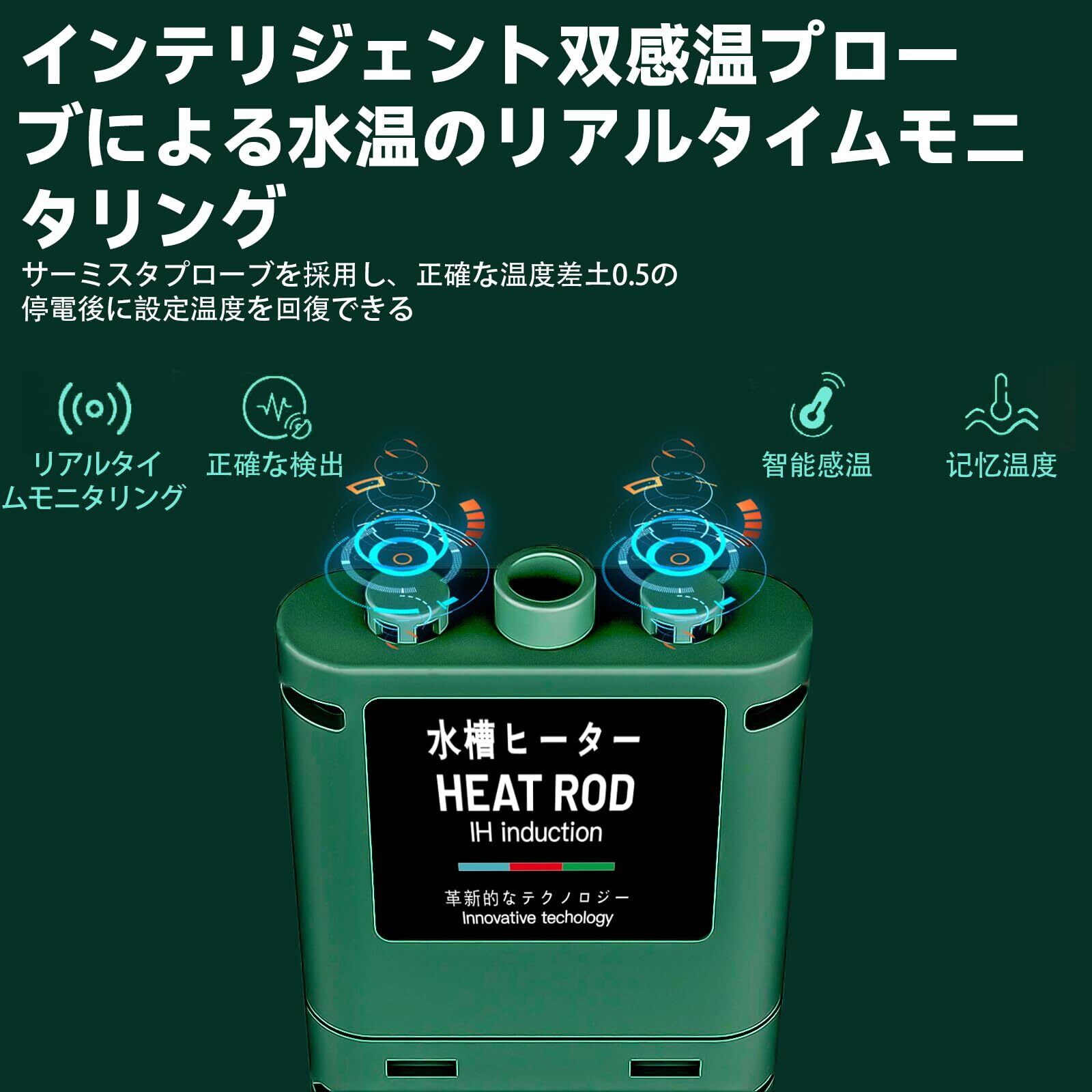 【周波数変換・多機能コントローラー】スマート水温管理:炭素繊維ヒーターは内蔵のPIDチップを搭載して水槽ヒーターの加熱初めた時は最高電力で急速加熱な効果を実現しています。設定温度に近づくと加熱電力が徐々に低下します。設定温度に到達すると低電力で温度を安定して、全天候で魚に安全と快適な生活環境を提供している同時に省電力を実現します。