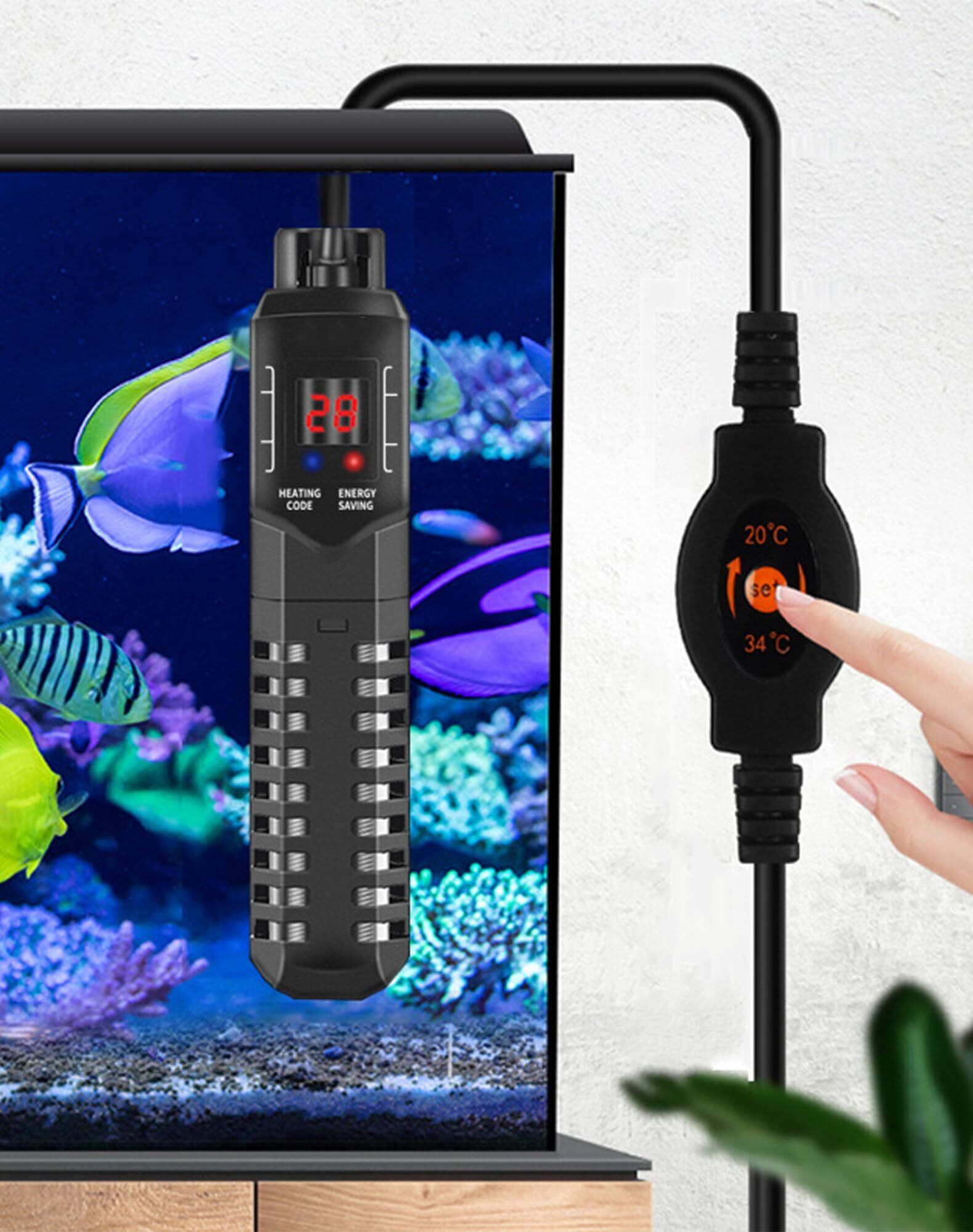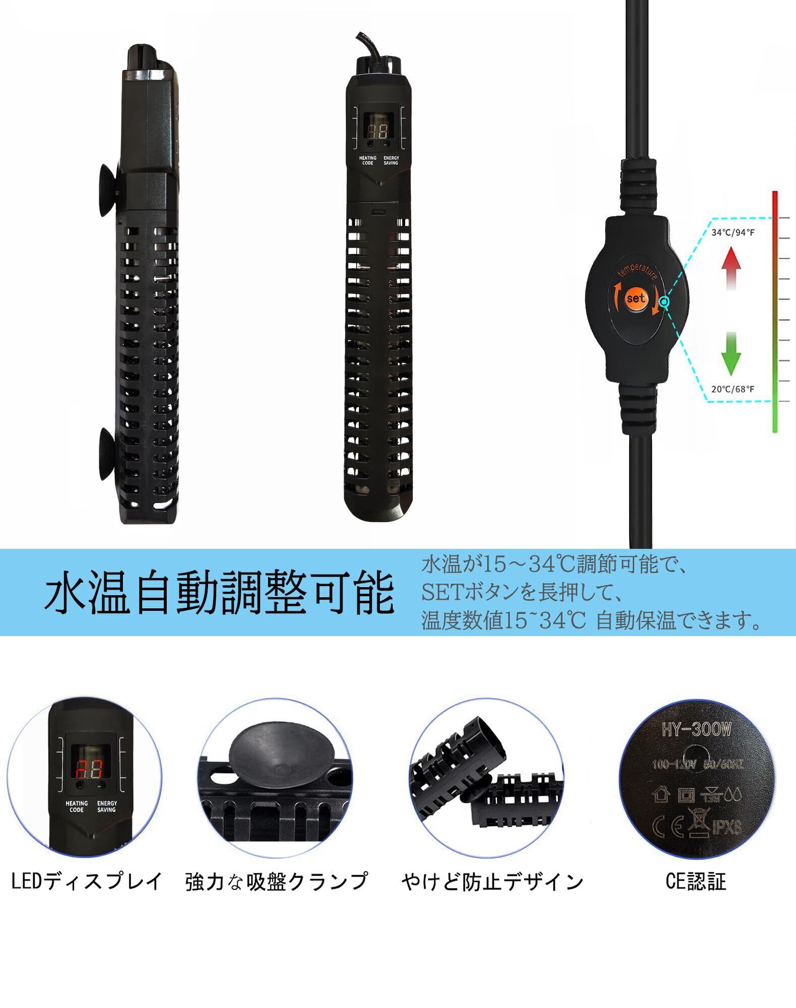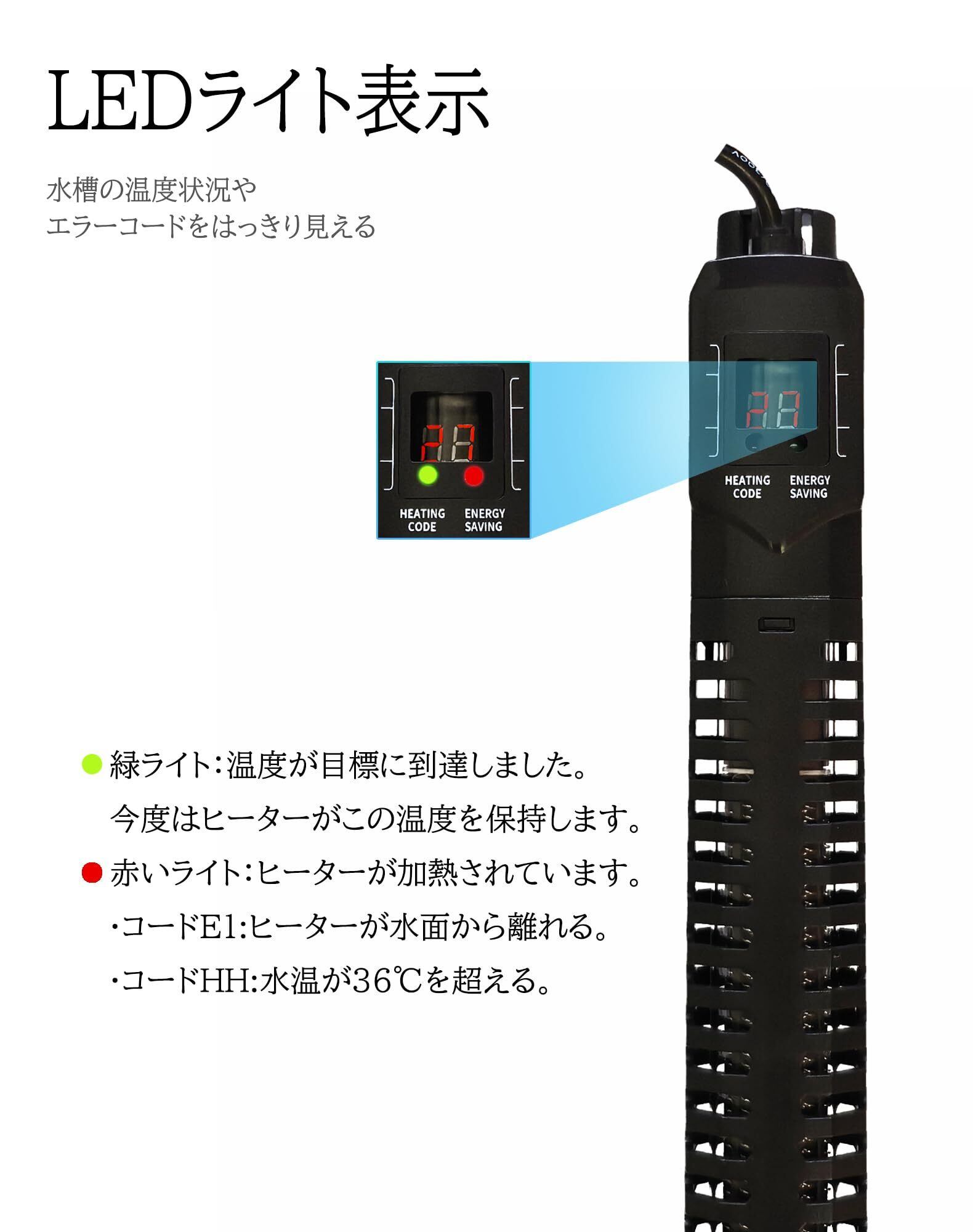 水槽用ヒーター LEDデジタル 20-34℃ オートヒーター 淡水海水両用 魚 亀 水中式 日本語取扱説明書付き