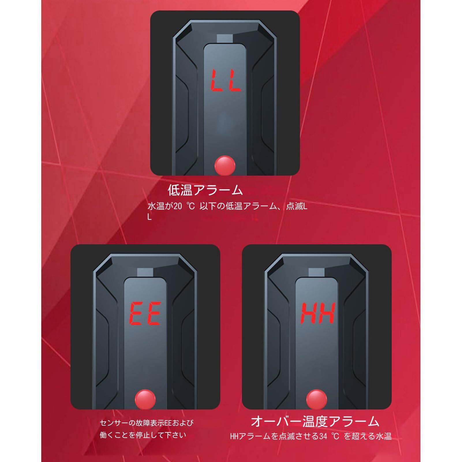 [安全保護] 加熱ロッドが水から離れると、LED スクリーンに L1 が表示され、点滅して動作を停止します。内蔵のインテリジェント センサーにより、水が検出されない場合はシャットダウンされ、魚をガードできます。