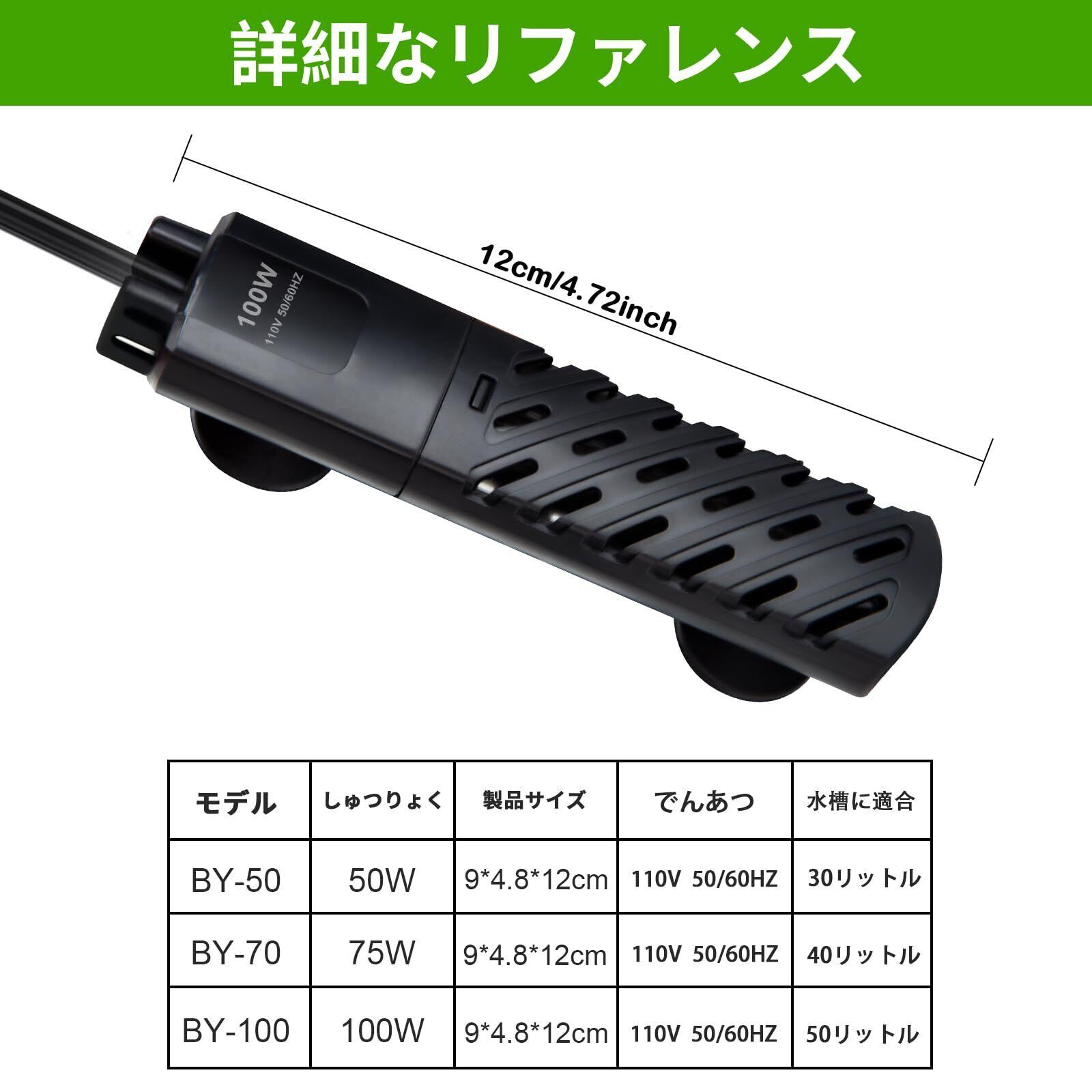 HUIZHOU 水槽 ヒーター 水中用 ミニヒーター,LED ディスプレイ,温度15度~34度可調節, 省エネ 防水 ヒーター, 縦横設置,石英防爆ガラス セーフカバー 吸盤付き, 熱帯魚 観賞魚 淡水海水両用 120L以下の水槽適用 (50ワット)