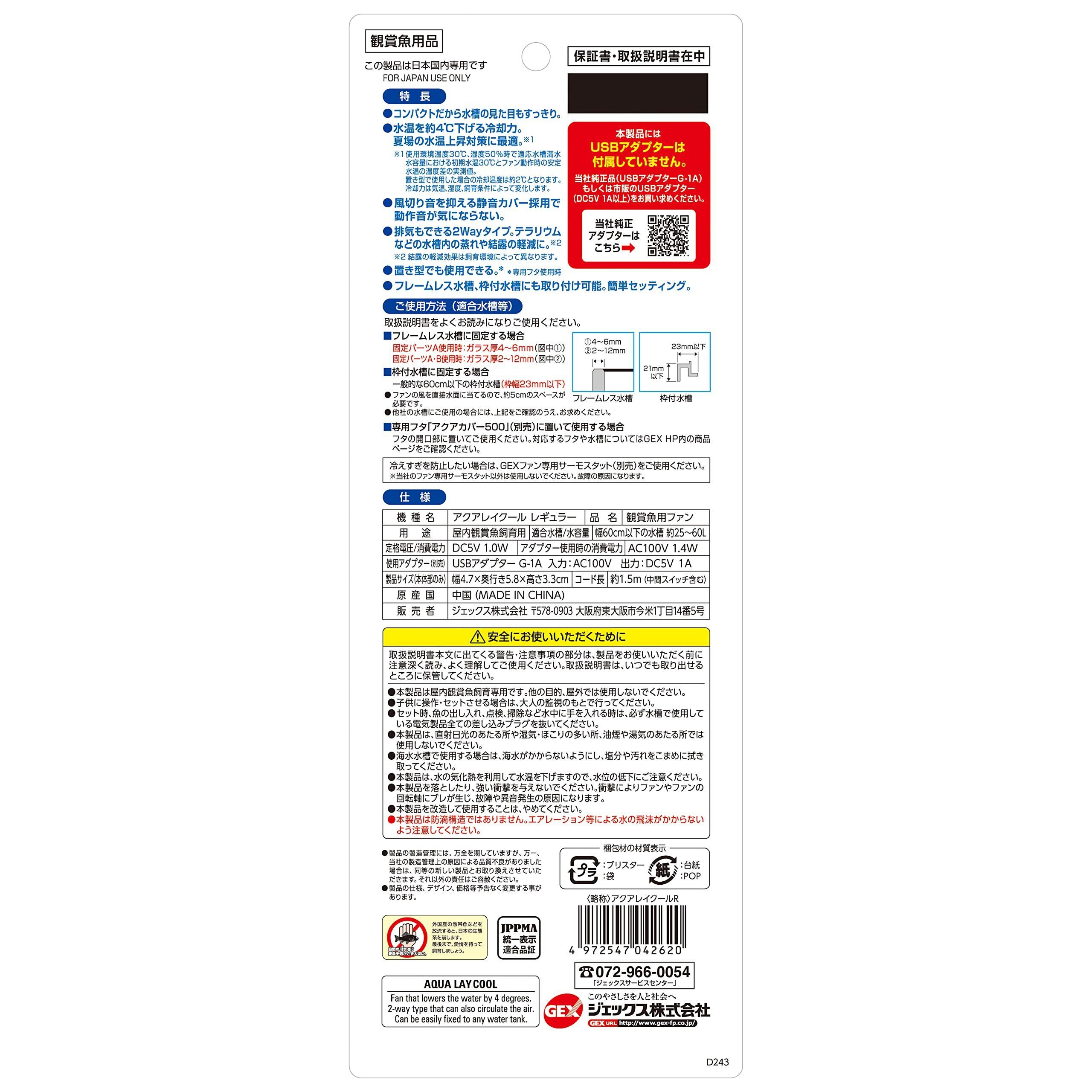 ジェックス GEX アクアレイクール レギュラー 観賞魚水槽用ファン 冷却 アクアリウム 簡単設置 水温上昇対策 60cmまでの水槽 水容量約25-60L用
