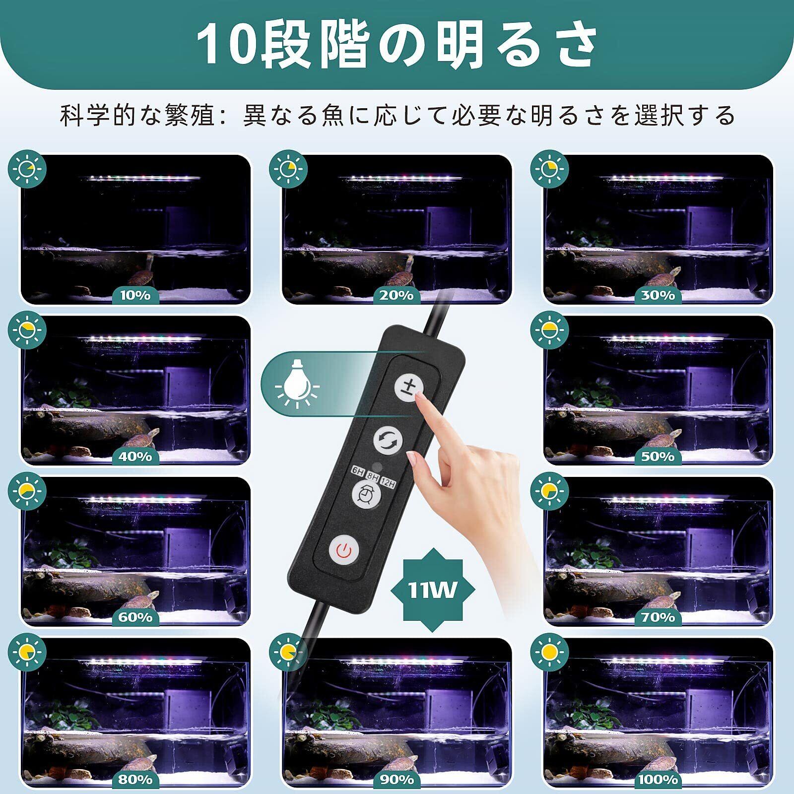hygger 水槽ライト 30-45cm水槽対応 10段階明るさ調整 6/8/12Hタイマー 3照明モード 照明 ledライト アクアリウムライト 防水 水草育成 熱帯魚 観賞魚 飼育 11W