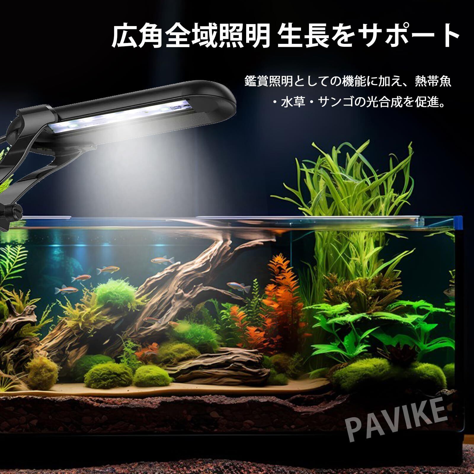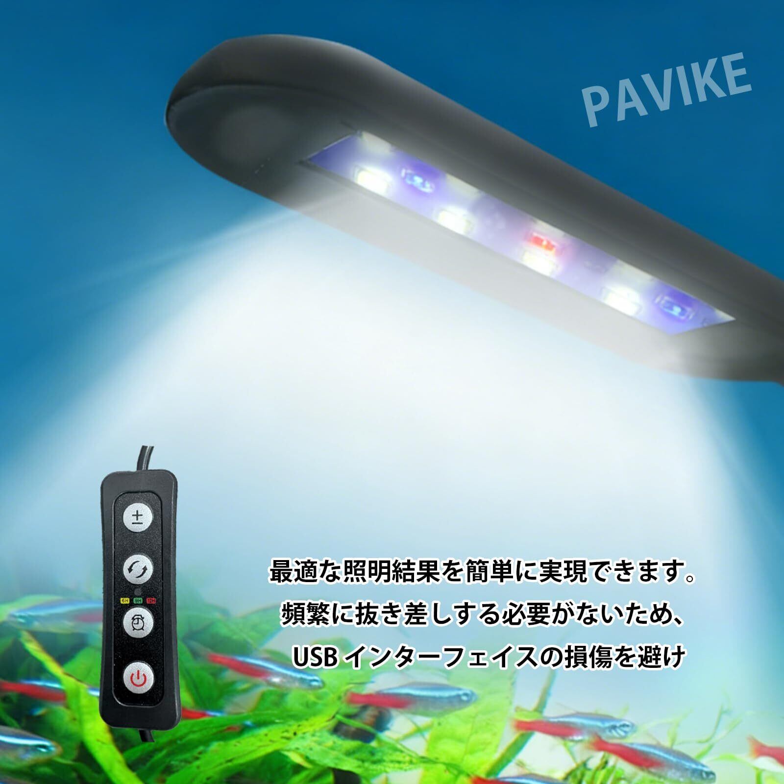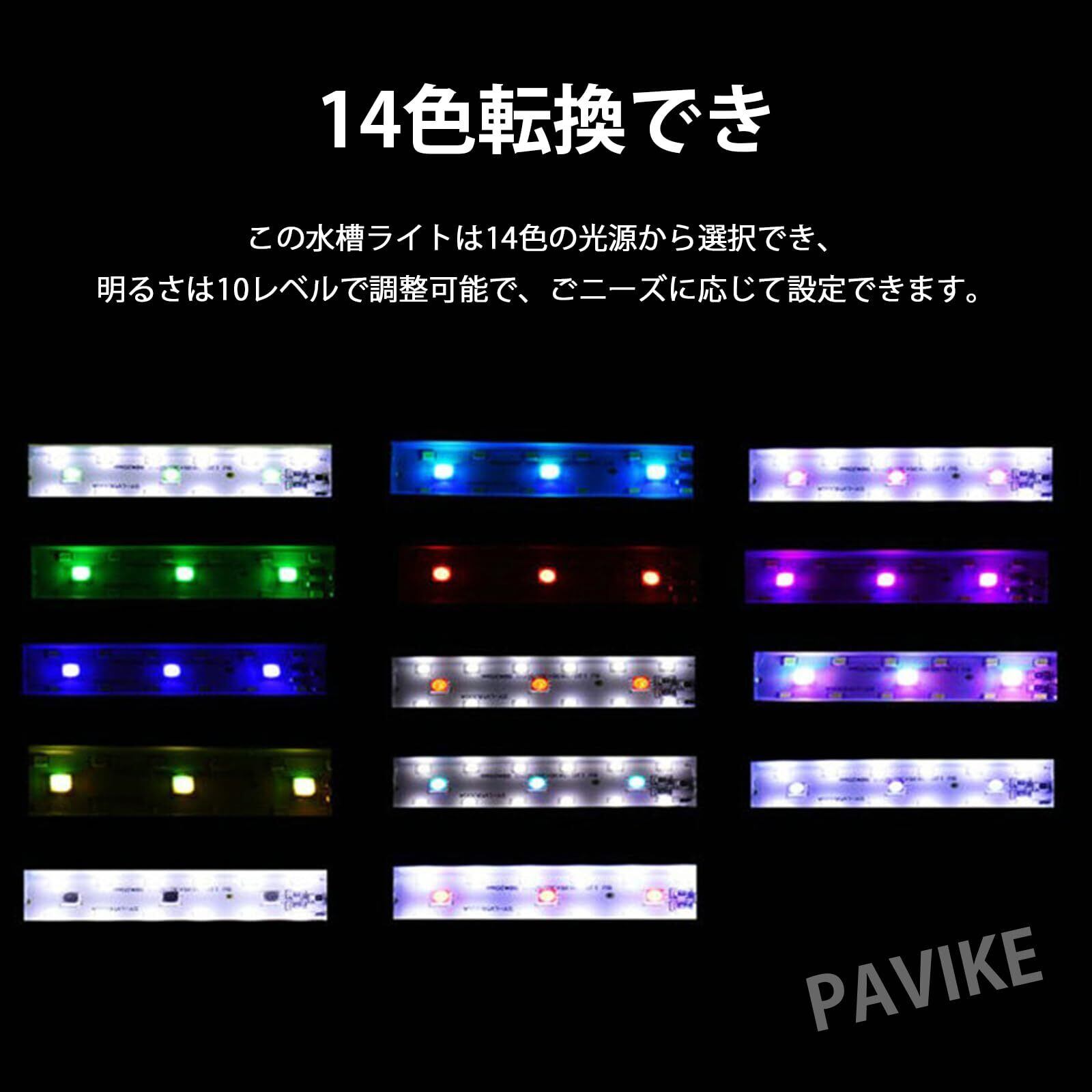 PAVIKE 水槽ライト 水族館 クリップライト 照明小型成長ライト タイマー付き 14色点灯 5階段の光量 8W 小型・軽量・高輝度 低エネルギー 水族館 水草育成 水槽照明 熱帯魚 メダカ 金魚に最適