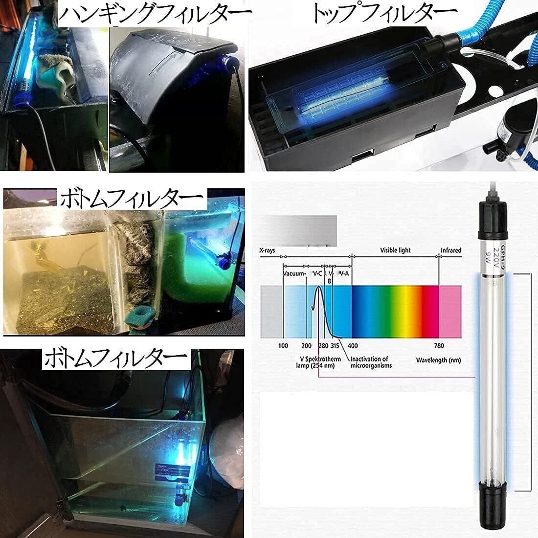 【ランプのサイズ】水槽灯は、耐久性があり丈夫な高品質の石英ガラスでできています。 110V 5W:ランプは長さ17.5cm、幅2.5 cm、ワイヤーは長さ130 cmです。2000Lルまでの水槽または池に適しています。1日1〜2時間使用でき、水槽の水質に応じて使用時間を調整できます。 (購入前にランプをフィルターシステムに設置できることを測定して確認してください)