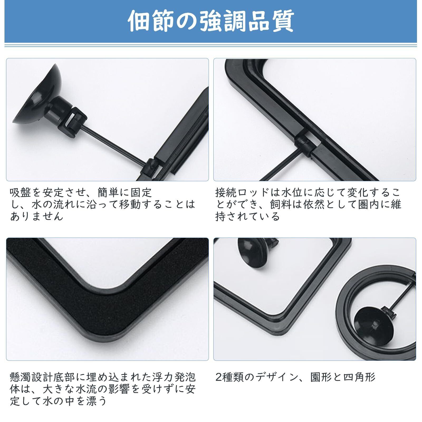 MAEXUS 餌拡散防止リング 4個入り エサ拡散防止 吸盤付き水槽用品 飼育用餌拡散防止リング 水族館エサやり道具 水槽エサの拡散を防ぐ 丸型、角型