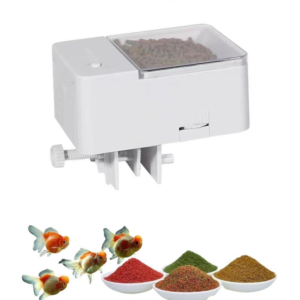 魚自動給餌器 50g大容量 餌やり器 定時 時間設定 給餌量調整可能 密閉式防湿設計 静音 多段階&多回転数 水族館 熱帯魚/金魚/亀 小魚の 水槽や小魚の飼育に最適