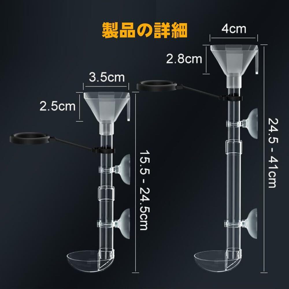 魚給餌器チューブセット エサ拡散防止 水質汚染を防ぐ 2サイズの組み合わせパック 組み立て簡単 長さ調整可能 漏斗型デザイン 透明 餌入れ水槽用品 稚魚 飼育用 フィーダーカップ水槽ブラシ付き