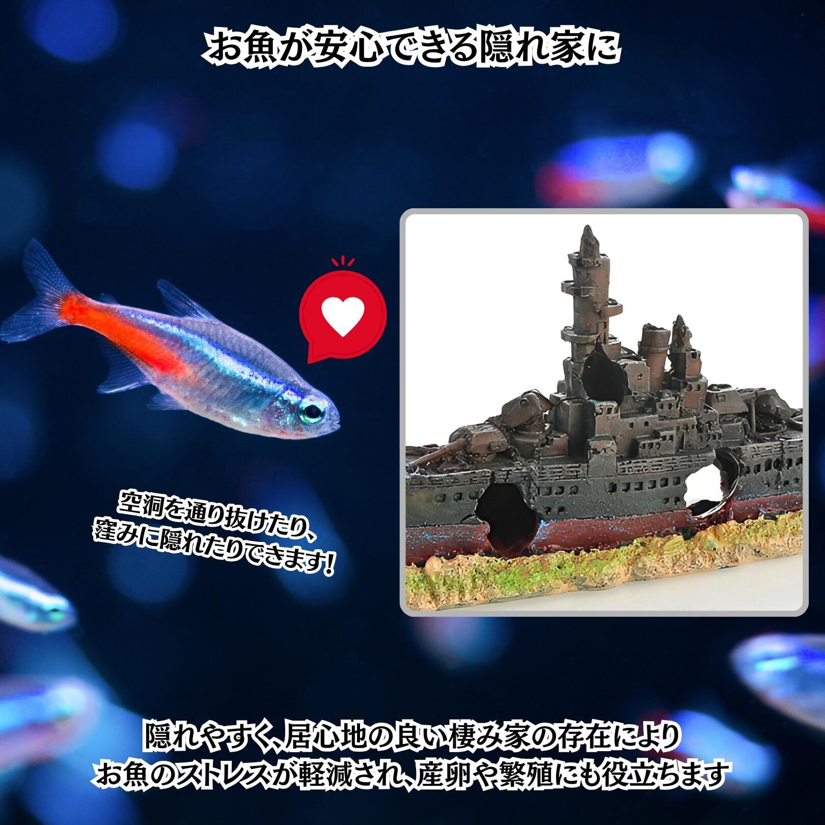 Charmoon 水槽 オブジェ 沈没船 軍艦 アクアリウム オーナメント 隠れ家 インテリア 置物 飾り