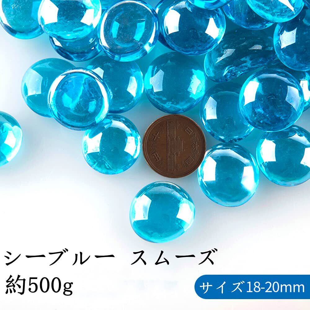 【新春セール】ガラスの粒 平たい円形 ガラス石 飾り石 彩り石 DIY用 ジュエリー アクセサリーパーツ 底砂・砂利 水槽 水族用品 庭・ガーデン飾り石 飾り ビーチ小物 レジン封入 手芸用品 手作り素材(約500g )