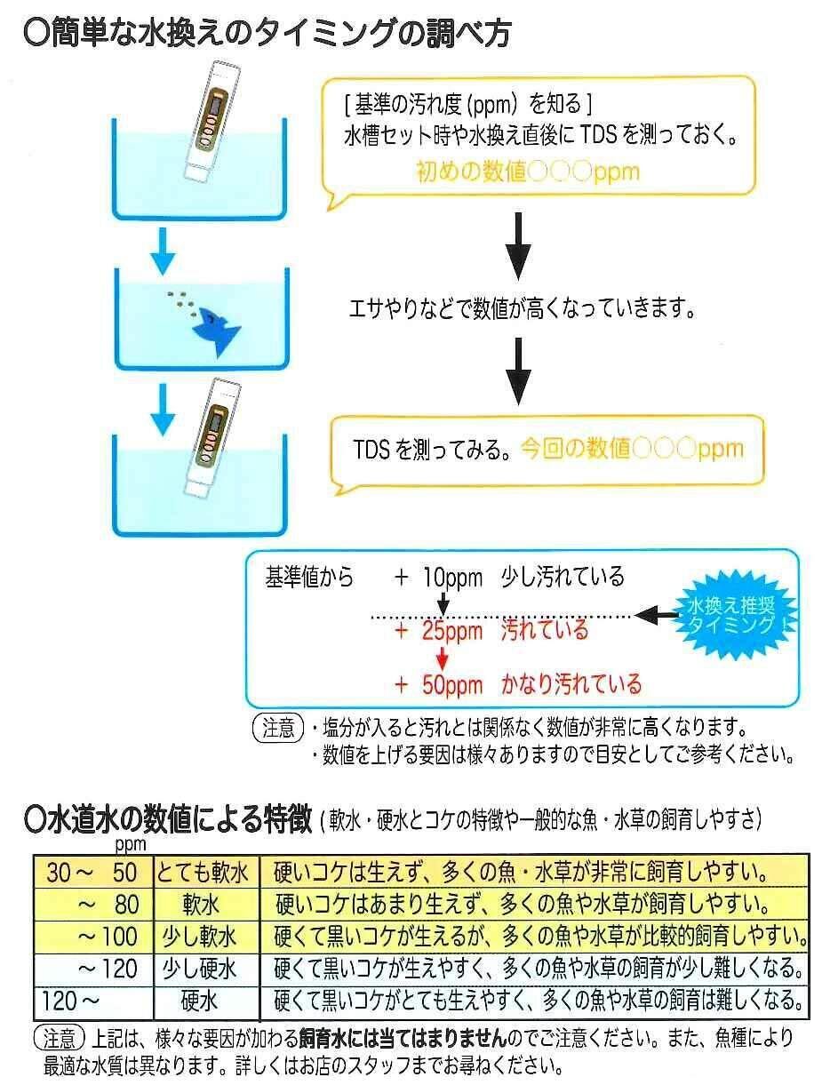 水換えのタイミングを数値で具体的につかむことができるようになります。