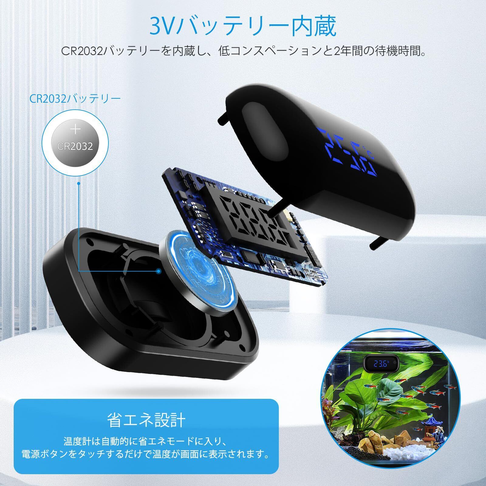 【省エネ】タッチボタンの表示温度は、温度計が自動的にスリープ状態、より環境に優しい省エネ、内蔵のCR2032ボタン電池を入力した後、操作なし5秒、24ヶ月間使用することができます。