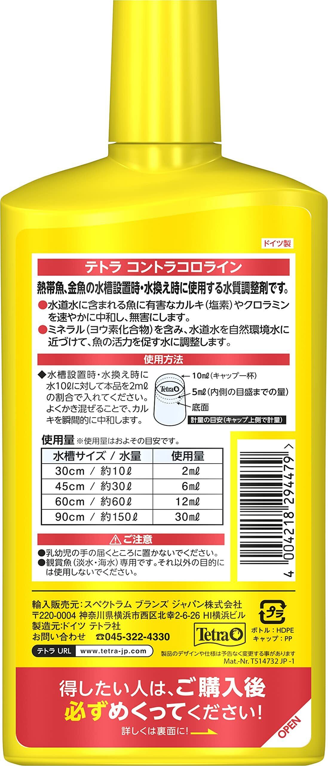 テトラ (Tetra) コントラコロライン 500ミリリットル 瞬間カルキ抜き ミネラル補給で健康維持 重金属無害化 水質調整剤 アクアリウム 熱帯魚 海水魚 金魚 メダカ カルキ抜き