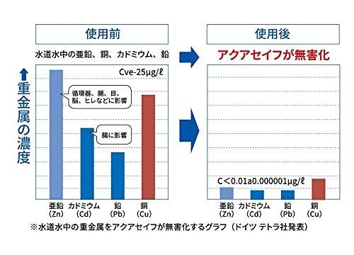 水道水に含まれるカルキ・クロラミン・重金属(亜鉛・鉛・カドミウム・銅)を無害化します